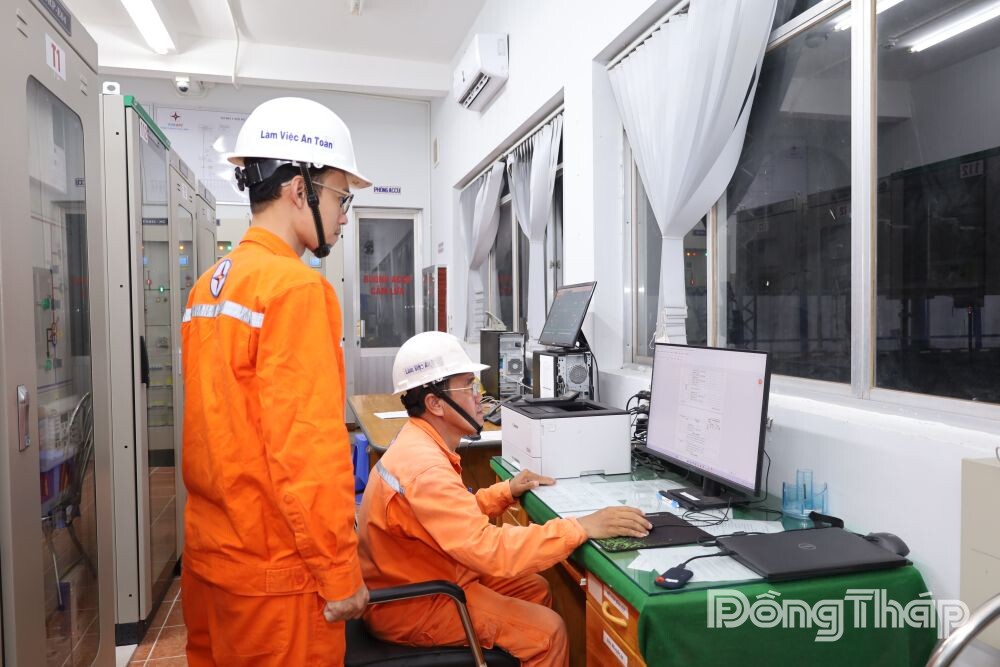 Thao tác đóng điện tại Trạm biến áp 110kV Cao Lãnh đến khoảng 20 giờ ngày 25-4-2025 thì hoàn tất.
