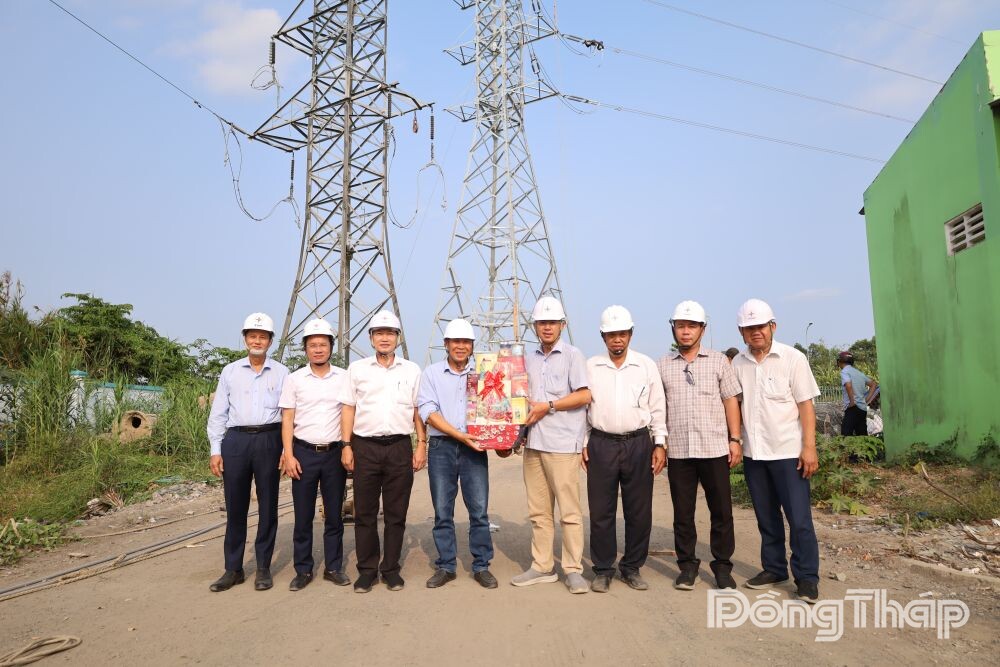 Lãnh đạo Hội đồng thành viên Tổng công ty Điện lực miền Nam và Công ty Điện lực Đồng Tháp thăm hỏi và tặng quà động viên đội ngũ kỹ sư, công nhân trước giờ đóng điện tại công trường.
