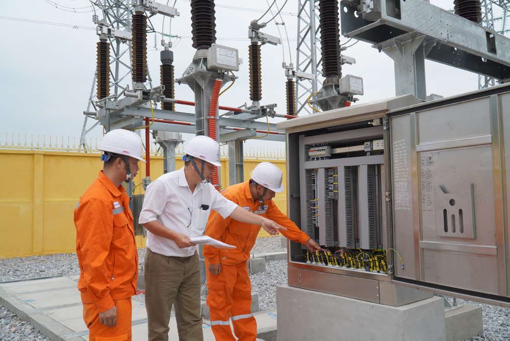 Cán bộ kỹ thuật ngành điện kiểm tra, thí nghiệm thiết bị sau lắp đặt, bảo đảm đầy đủ điều kiện vận hành an toàn Trạm biến áp 110kV Đa Mai.
