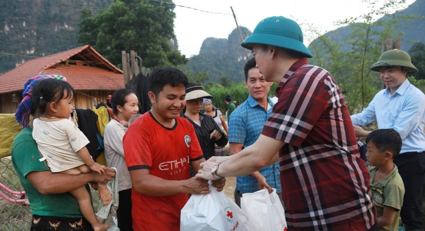 Hội Chữ thập đỏ tỉnh Lạng Sơn trao nhu yếu phẩm hỗ trợ người dân bị ngập lụt tại xã Vân Nham.