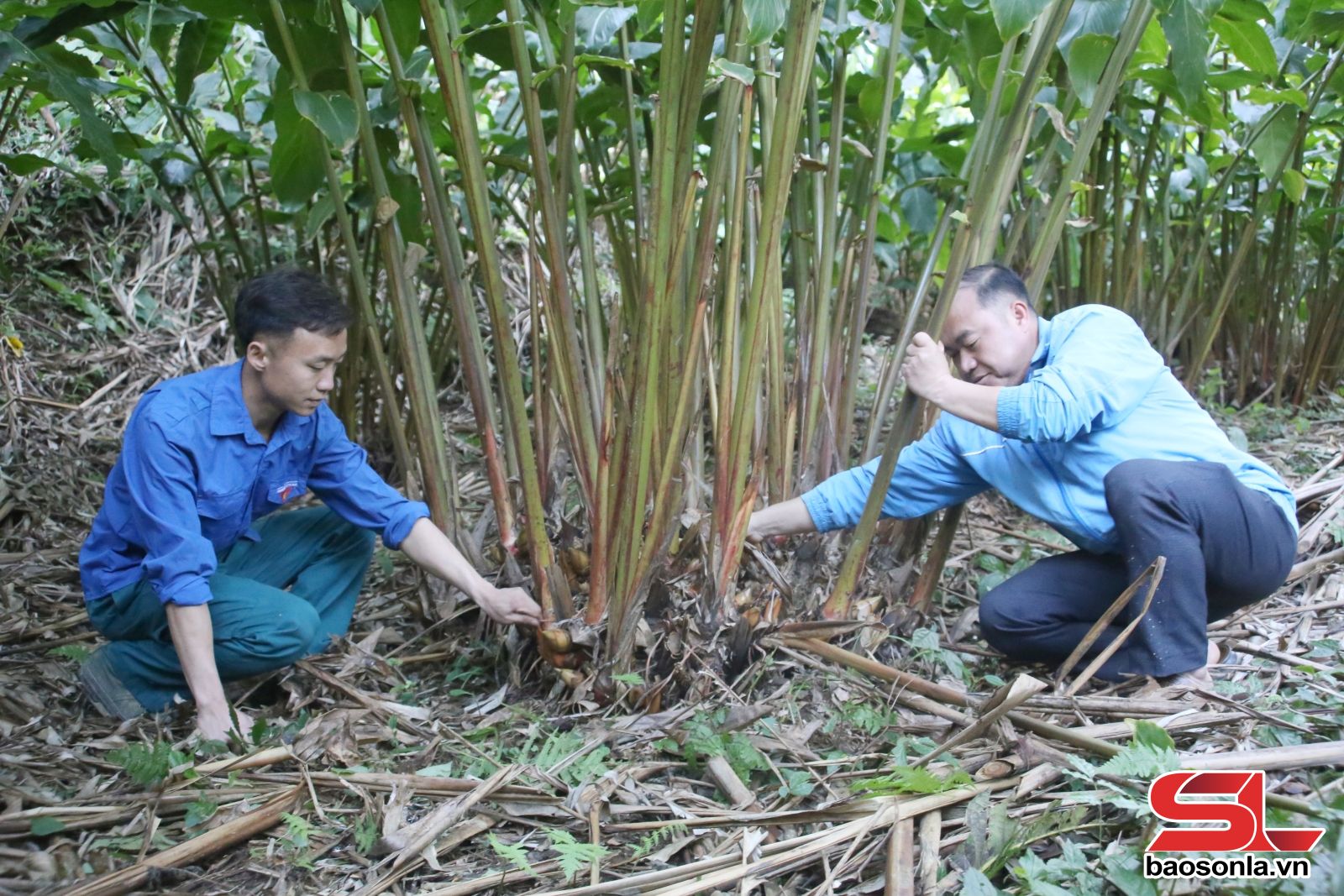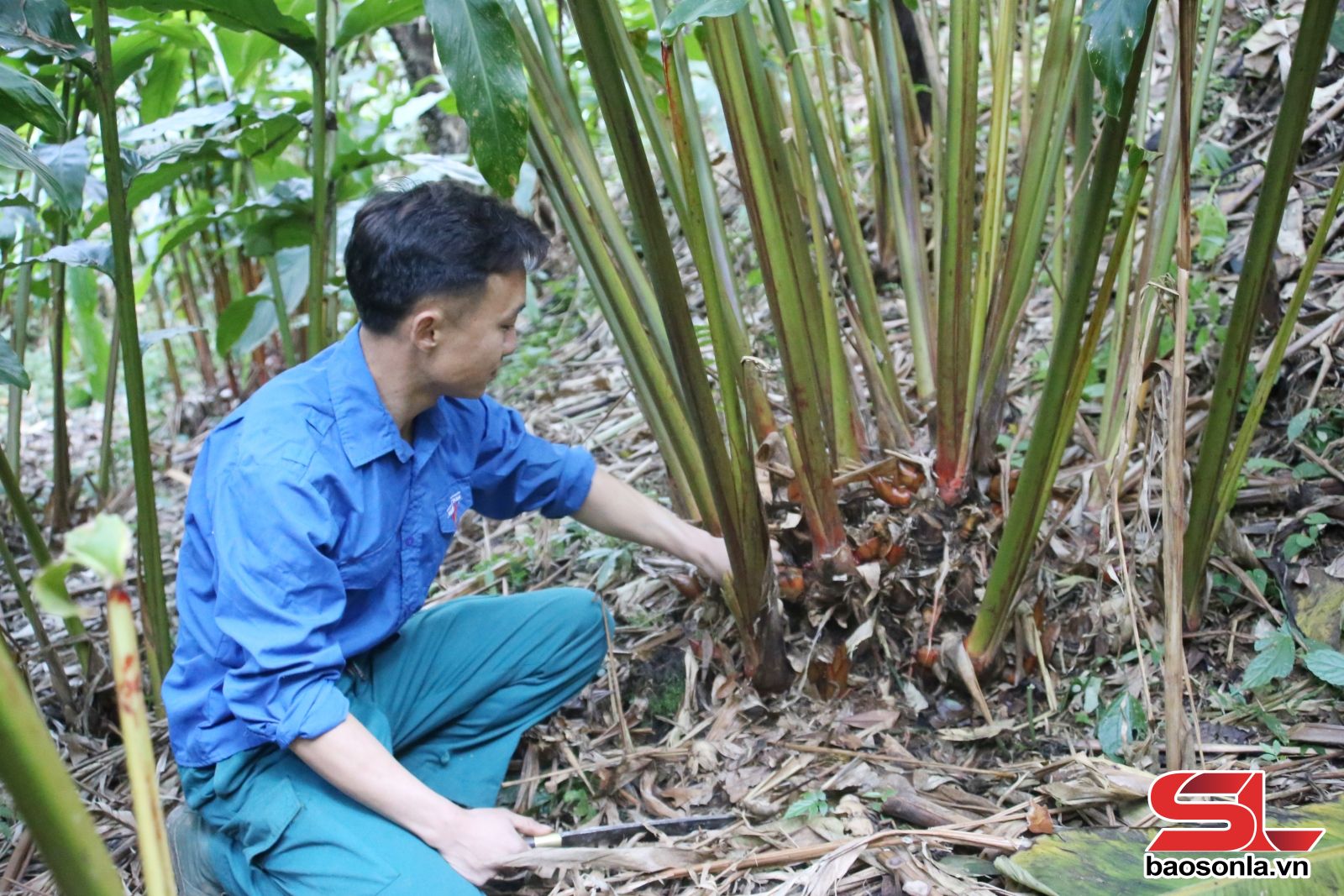 Đoàn viên, thanh niên chăm sóc vườn thảo quả.