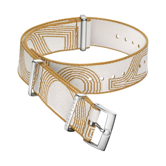 Điểm công nghệ đáng giá nhất của chiếc đồng hồ mà Trấn Thành lựa chọn chính là hệ thống Quick Change mới: chỉ cần nhấn nút ở hai bên lug là có thể thay dây trong vài giây mà không cần dụng cụ. Nhờ đó, Trấn Thành đã thay dây thép gốc bằng dây NATO polyamide vàng-trắng chính hãng, tạo tổng thể nhẹ nhàng, thể thao và hợp tông màu vàng-trắng chủ đạo của Olympic Paris 2024.