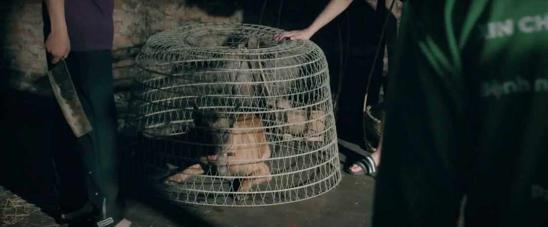 Thành đau lòng khi chứng kiến những chú chó bị nhốt trong lồng tại lò mổ