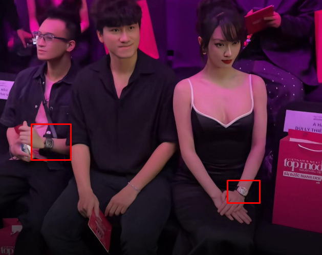 Chiếc đồng hồ 4 tỷ nổi bật trên tay của Đức Phạm và Vũ Thúy Quỳnh.