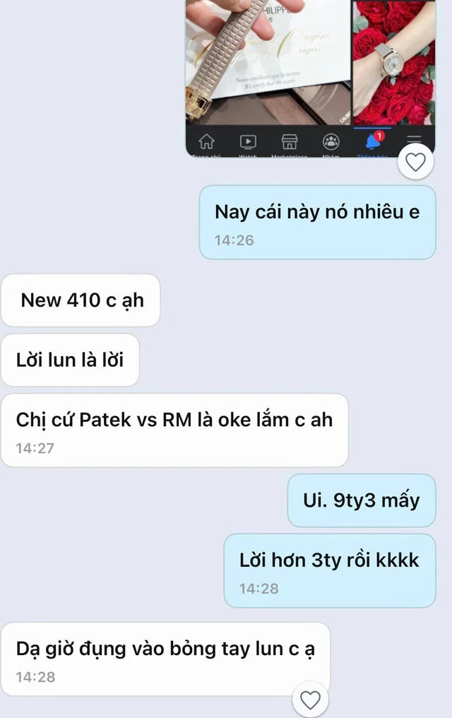 Chỉ sau vài tháng chiếc đồng hồ của Đoàn Di Băng đã thu về lợi nhuận khủng nếu bán ra chốt lời. Ảnh: FBNV