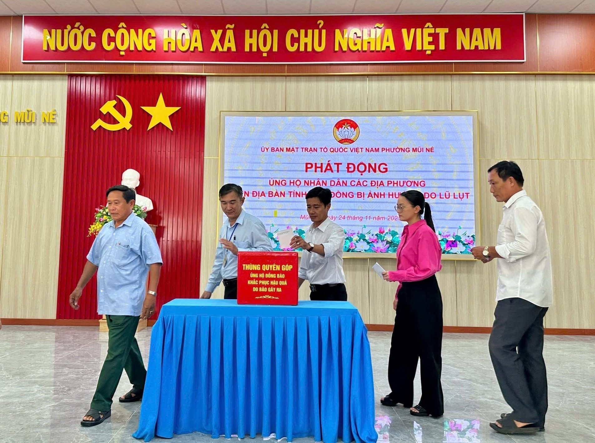 Hưởng ứng lời kêu gọi của Ủy ban MTTQ Việt Nam tỉnh, phường Mũi Né vừa tổ chức Lễ phát động ủng hộ Nhân dân vùng lũ với sự tham dự đông đủ của Thường trực Đảng ủy, lãnh đạo các phòng, ban, đoàn thể và đại diện Nhân dân.
