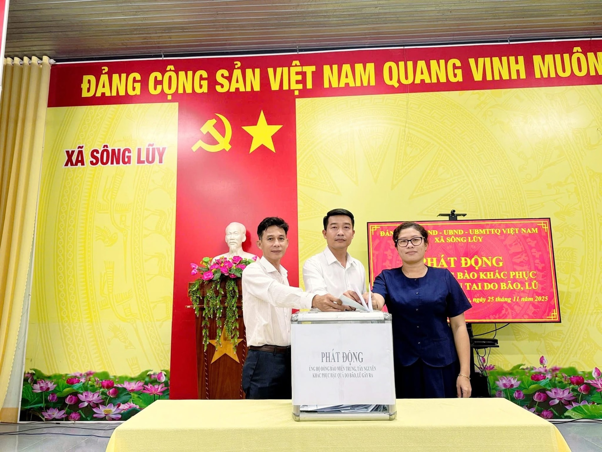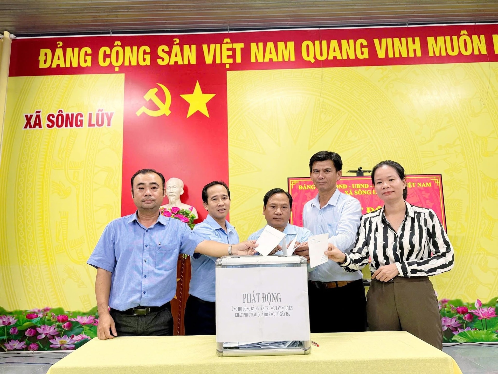 Tiếp nối tinh thần đó, Đảng ủy xã Sông Lũy cũng tổ chức Lễ phát động quyên góp nhằm hỗ trợ đồng bào miền Trung và Tây Nguyên khắc phục hậu quả sau lũ.