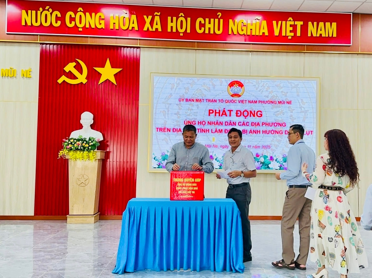 Lãnh đạo phường Mũi Né ủng hộ đồng bào lũ lụt