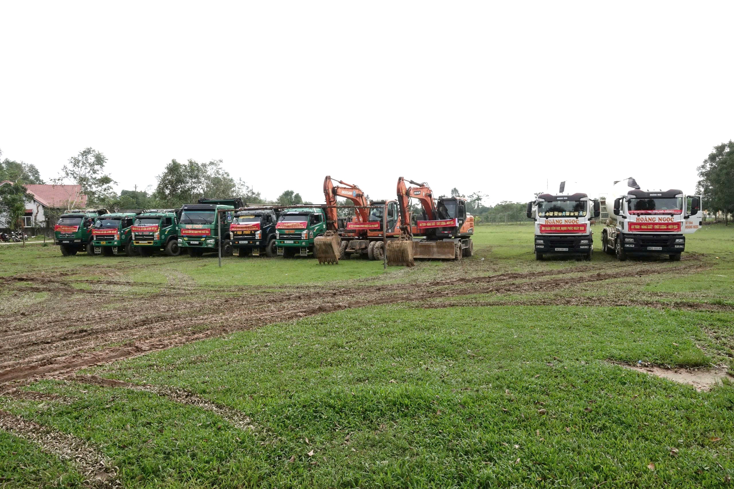 Các máy móc chuẩn bị lễ khởi công tại Dự án xây dựng Trường Phổ thông nội trú liên cấp Tiểu học – THCS Hương Khê. Ảnh: DƯƠNG QUANG