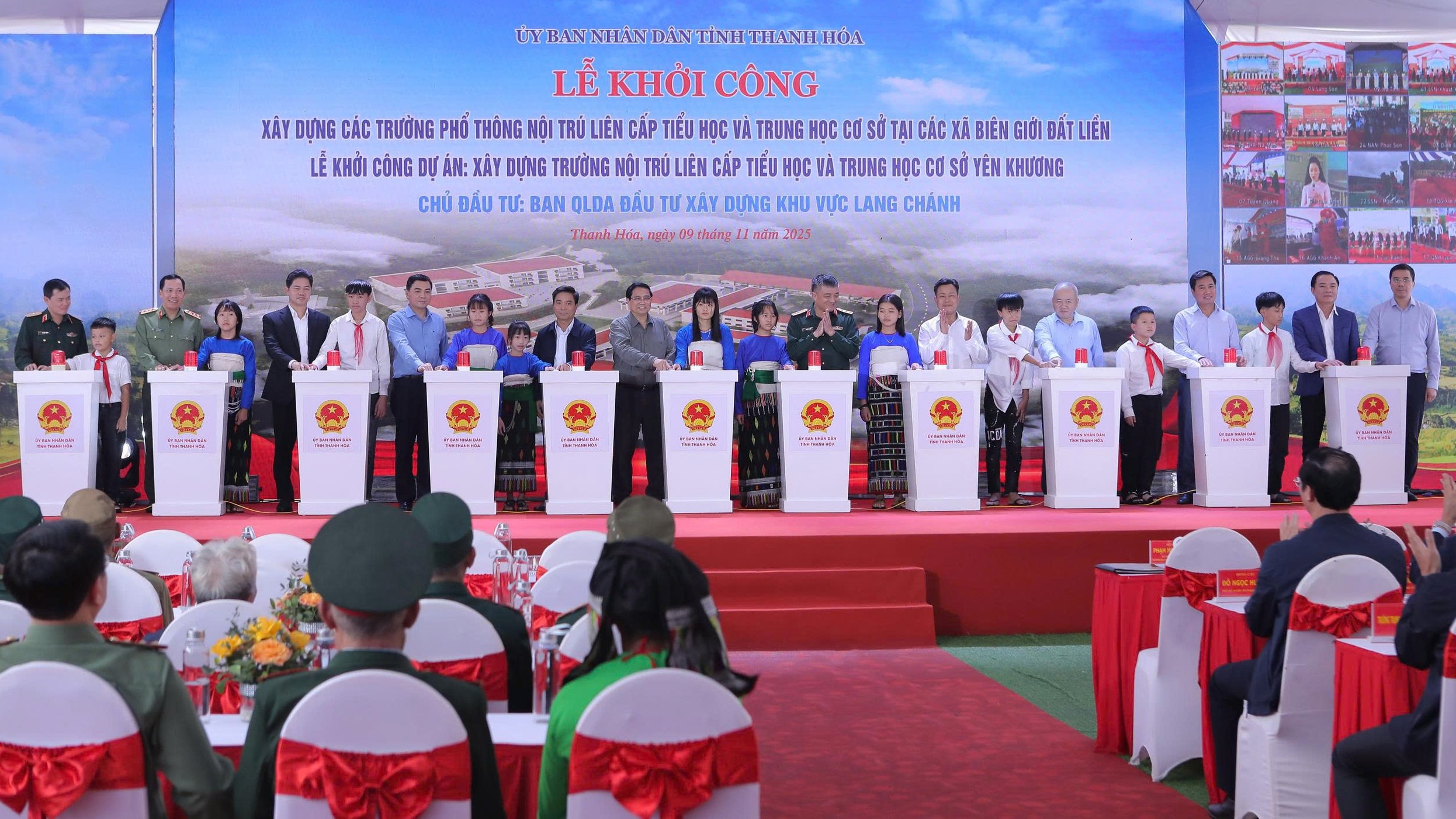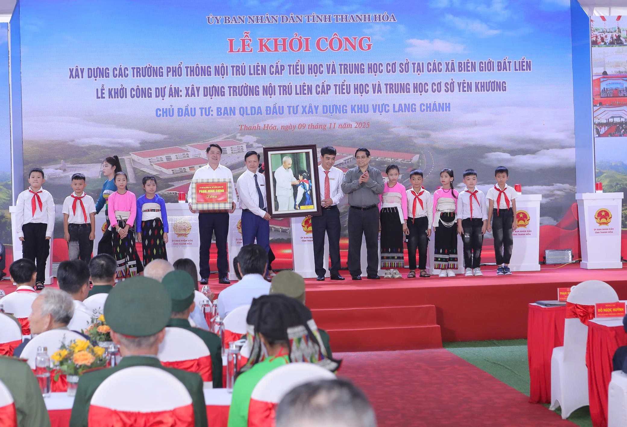 Tại điểm cầu trung tâm xã Yên Khương (tỉnh Thanh Hóa), Thủ tướng Chính phủ Phạm Minh Chính đã dự và phát biểu chỉ đạo tại lễ khởi công Trường Phổ thông nội trú liên cấp Tiểu học và THCS Yên Khương, một trong các công trình thuộc chương trình đầu tư xây dựng 100 trường phổ thông nội trú liên cấp tại các xã biên giới đất liền.