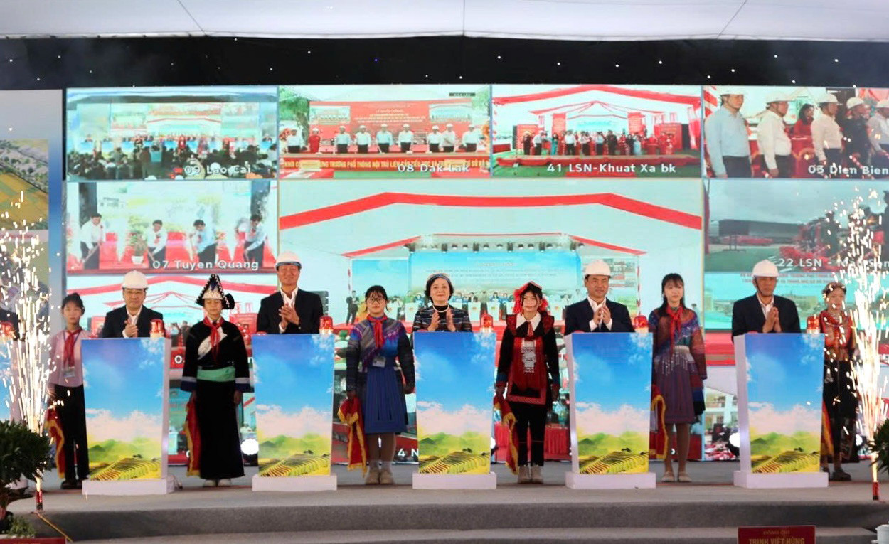 Tỉnh Lào Cai đã tổ chức khởi công xây dựng 4 trường phổ thông nội trú liên cấp TH-THCS. Phó Thủ tướng Phạm Thị Thanh Trà tham dự buổi lễ tại Trường Phổ thông nội trú liên cấp ở xã Mường Khương, tỉnh Lào Cai