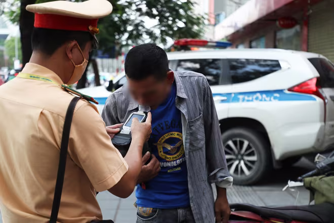 Tại khu vực ngã tư Thanh Nhàn - Bạch Mai, Chỉ huy Đội CSGT số 4 cũng thông tin, để tránh ảnh hưởng đến việc lưu thông của người dân, tổ công tác kiểm tra nhanh bằng phương pháp định tính, khi phát hiện "có cồn" sẽ dùng máy chuyên dụng để kiểm tra định lượng mức độ vi phạm, làm căn cứ để xử lý.