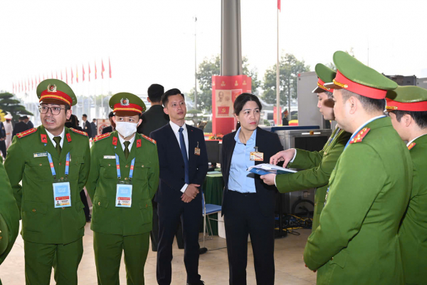 Đại tá Đỗ Xuân Tiệp, Phó Tư lệnh Bộ Tư lệnh Cảnh vệ trực tiếp kiểm tra, chỉ đạo công tác triển khai phương án bảo vệ vòng trong tại Trung tâm Hội nghị Quốc gia, bảo đảm an ninh, an toàn tuyệt đối cho Lễ tổng duyệt và các hoạt động phục vụ Đại hội.