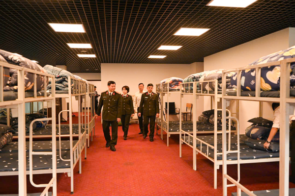 Cán bộ Phòng Hậu cần kiểm tra, rà soát công tác bảo đảm điều kiện ăn, ở, sinh hoạt và trang bị phục vụ lực lượng làm nhiệm vụ bảo vệ vòng trong Đại hội XIV của Đảng, bảo đảm đầy đủ, chu đáo.