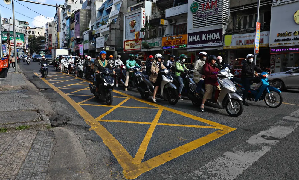Cơ quan chức năng cho biết, việc triển khai kẻ vạch mắt võng tại các nút giao có đèn tín hiệu giao thông không chỉ nhắc nhở người đi đường không dừng, không chắn ngang làn rẽ phải mà còn giúp phương tiện thoát nhanh khỏi nút giao.