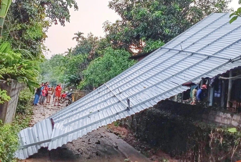 Lốc kèm theo mưa gây thiệt hại tài sản của người dân xã Ngọc Liên.