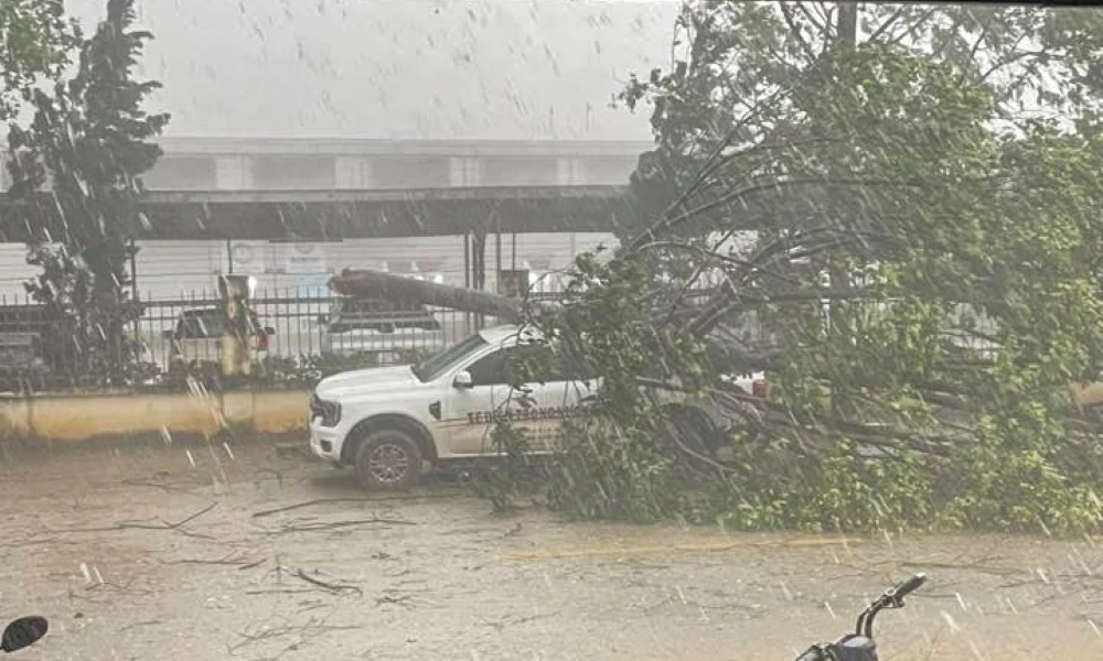 Dông lốc khiến cây cối đổ ngang đường giao thông trên địa bàn xã Giao An.