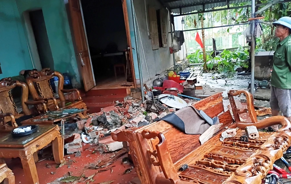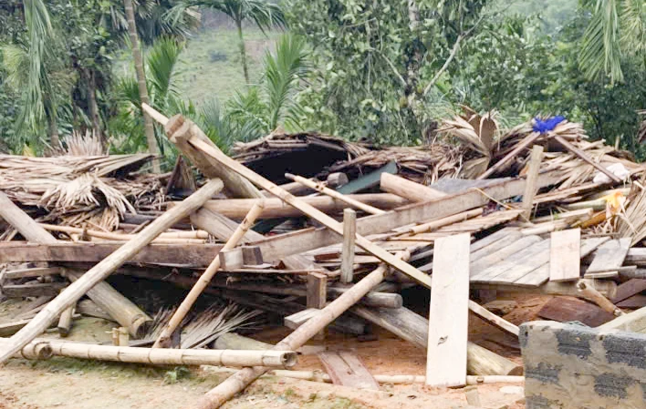 Dông lốc khiến ngôi nhà sàn ở xã Nam Xuân sập đổ hoàn toàn khiến 1 người tử vong.