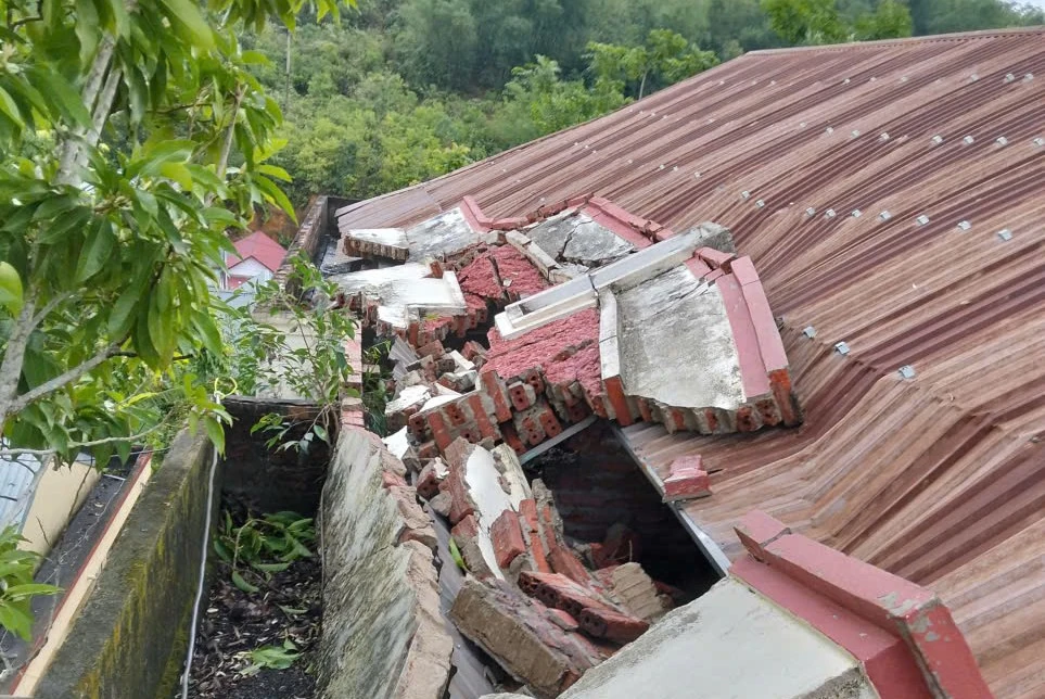 Dông lốc làm sập mái trường Tiểu học và Mầm non xã Phú Xuân.