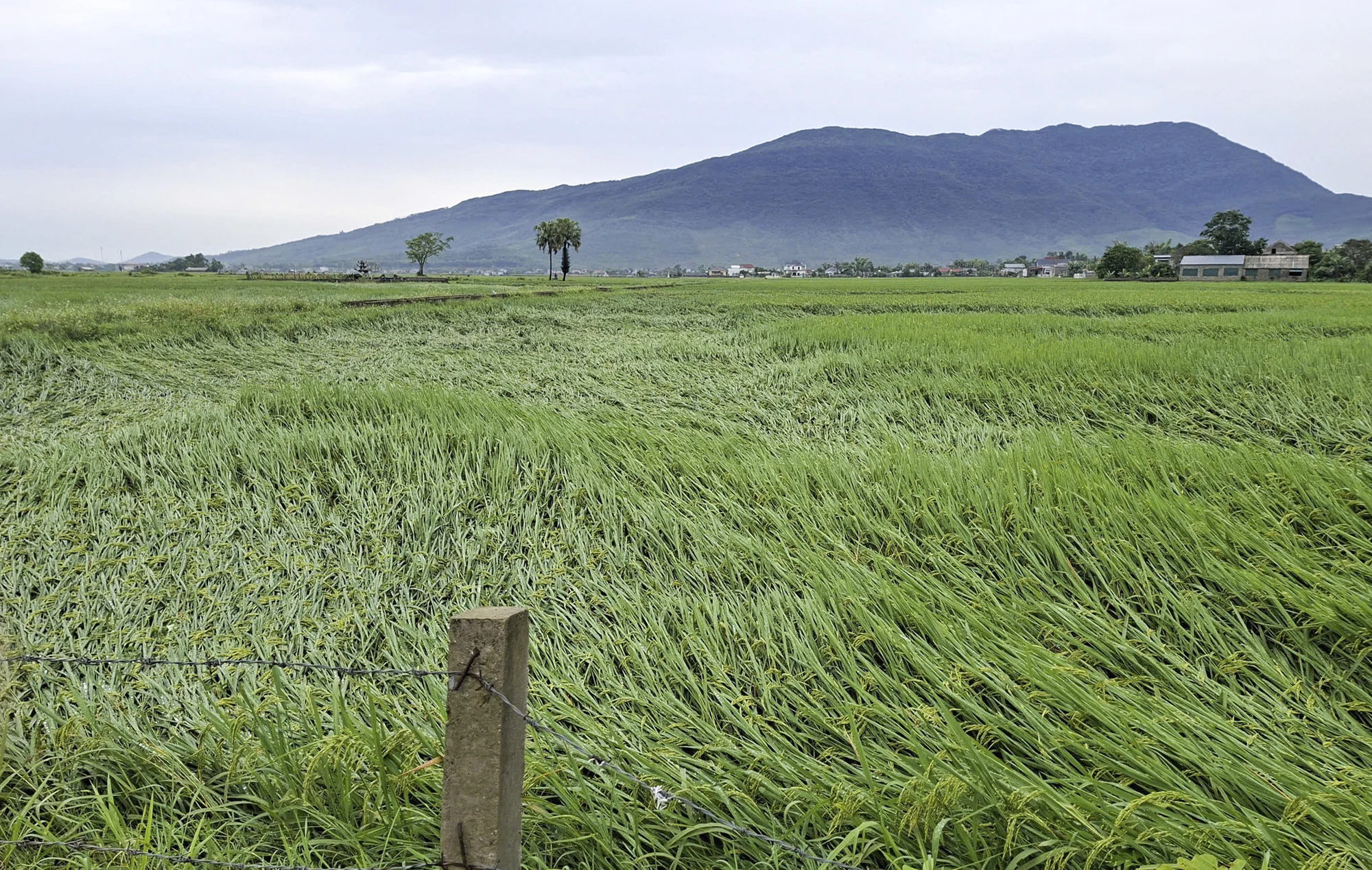 Dông lốc khiến hàng chục ha lúa xuân của xã Các Sơn bị gãy đổ.