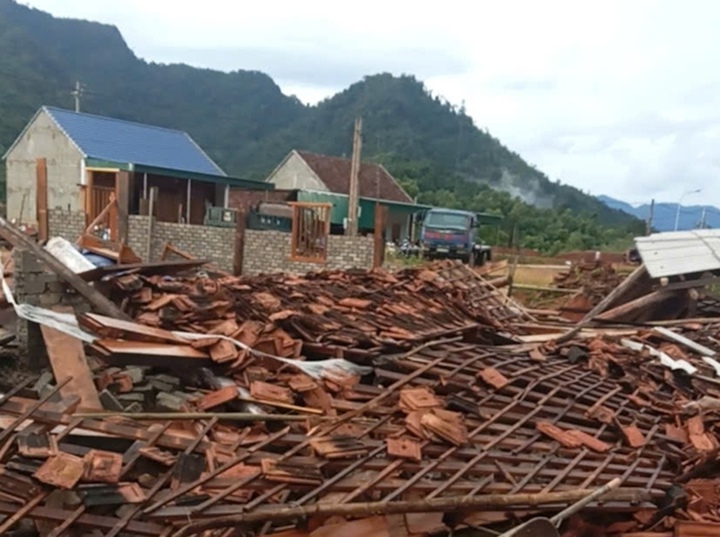 Bà Nguyễn Thị Hoài - Chủ tịch UBND xã Thông Thụ (tỉnh Nghệ An) cho biết, lúc 14h ngày 5/10 địa phương có mưa to kèm theo gió lốc. Chỉ trong thời gian ngắn, dông lốc đã làm sập hai ngôi nhà kiên cố của các hộ ông Vi Văn Thắng và Hà Văn Huyền (bản Mường Piệt), may mắn không gây thiệt hại về người, trong khi nhiều nhà khác cũng bị hư hỏng, tốc mái.