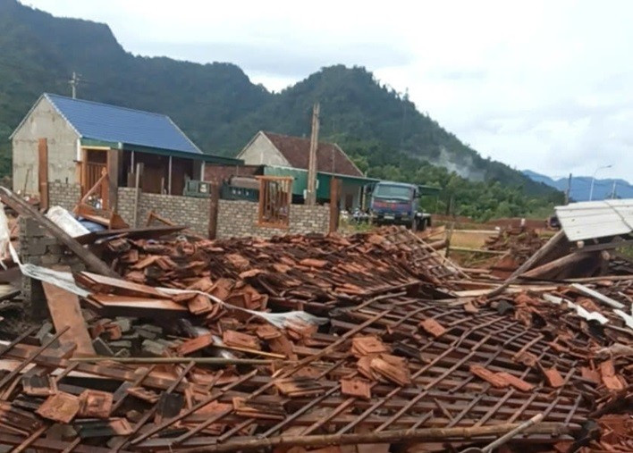 Chiều 5/10, thông tin từ UBND xã Thông Thụ (Nghệ An) cho biết, trên địa bàn xảy ra mưa to, gió lốc làm đổ sập hoàn toàn hai ngôi nhà kiên cố của các hộ dân, nhiều nhà khác bị tốc mái.