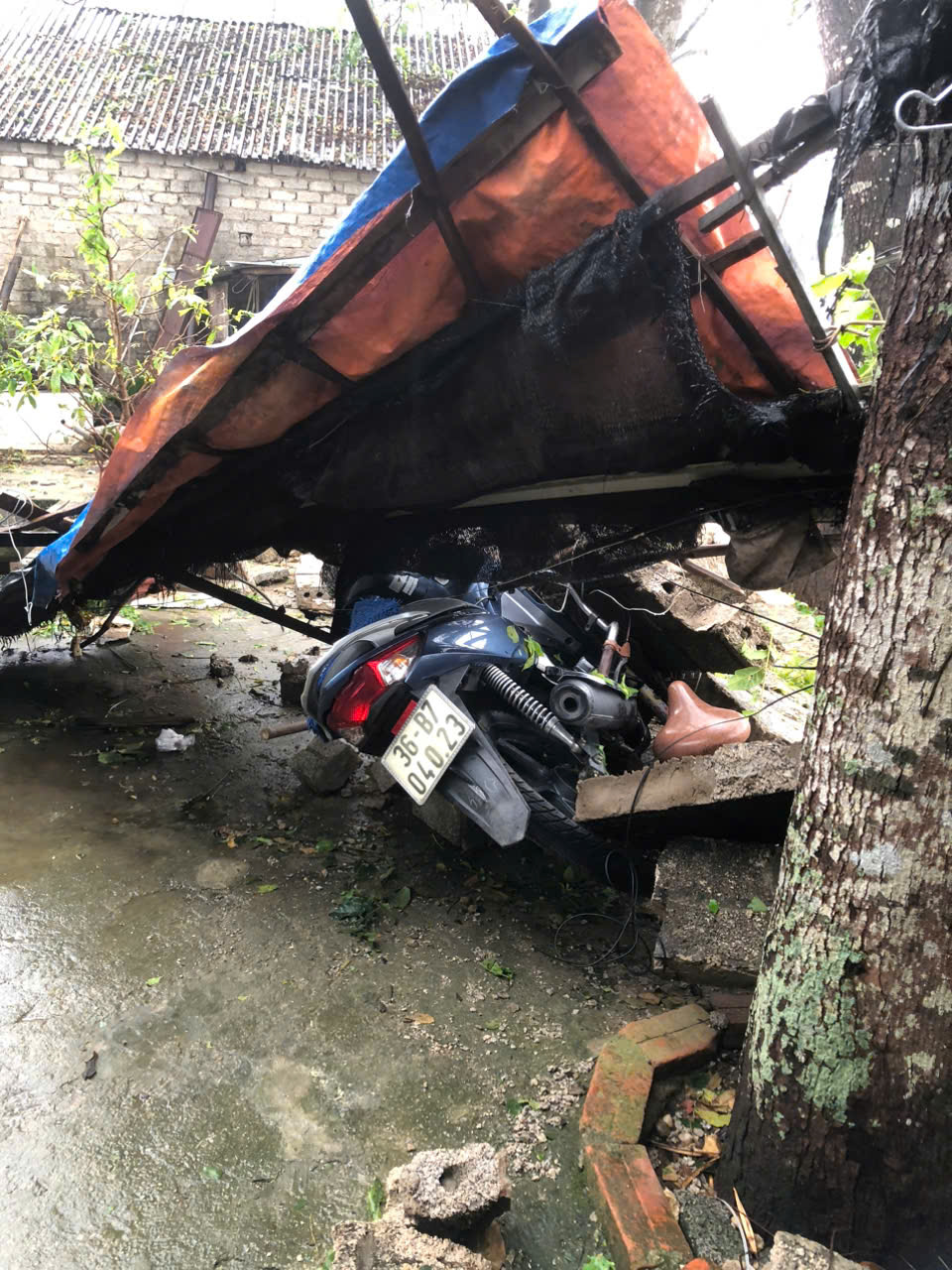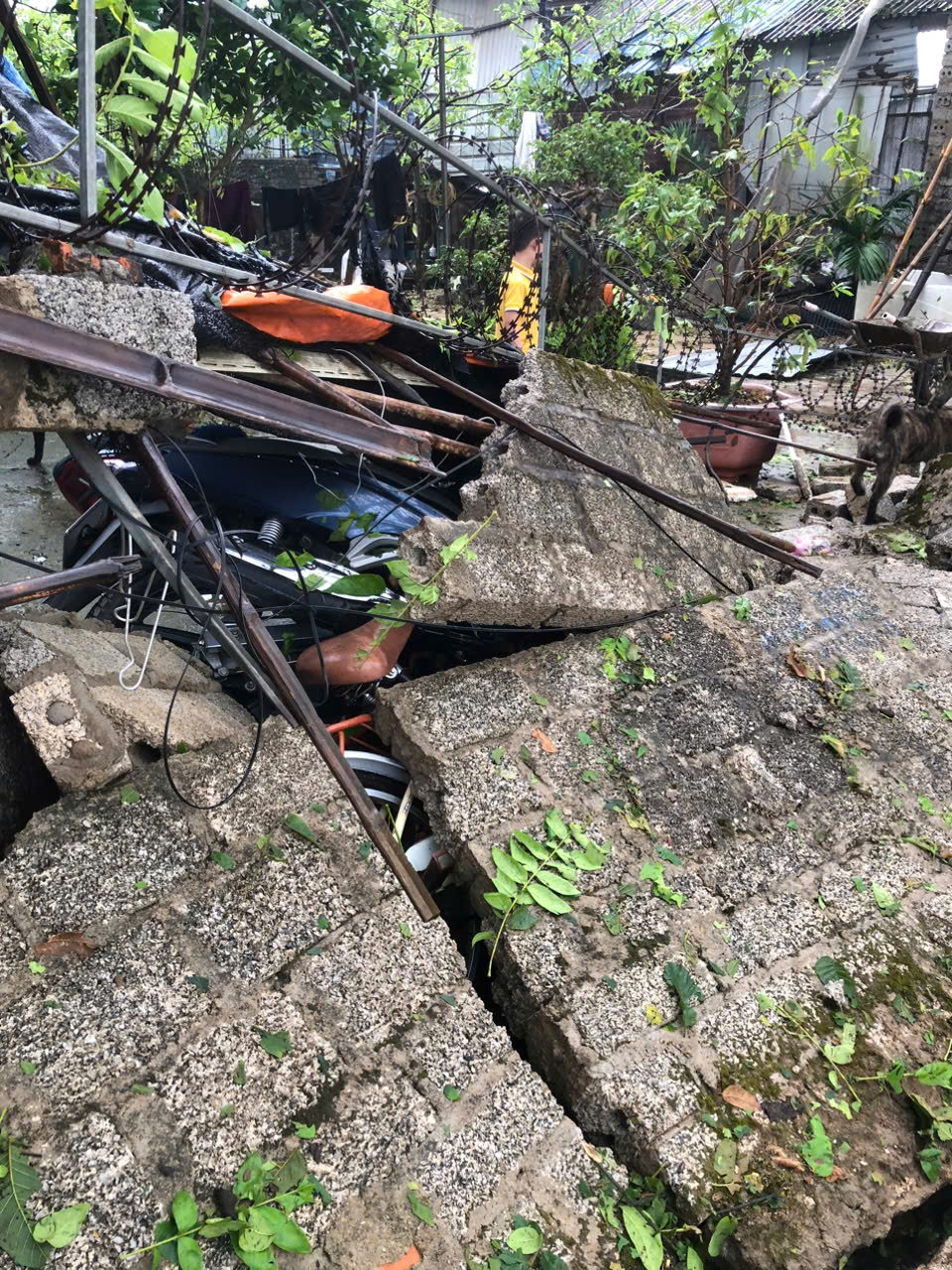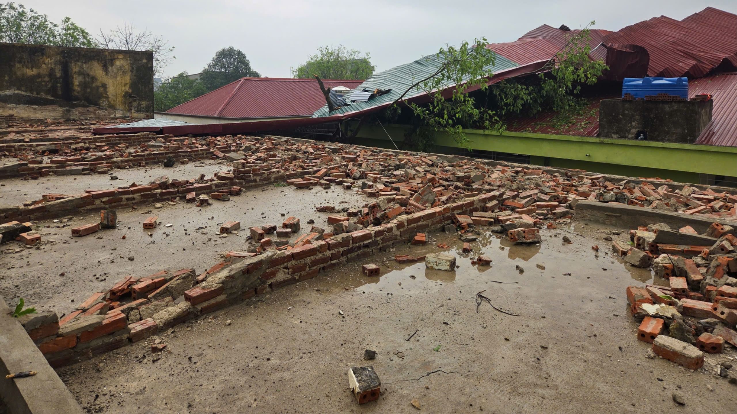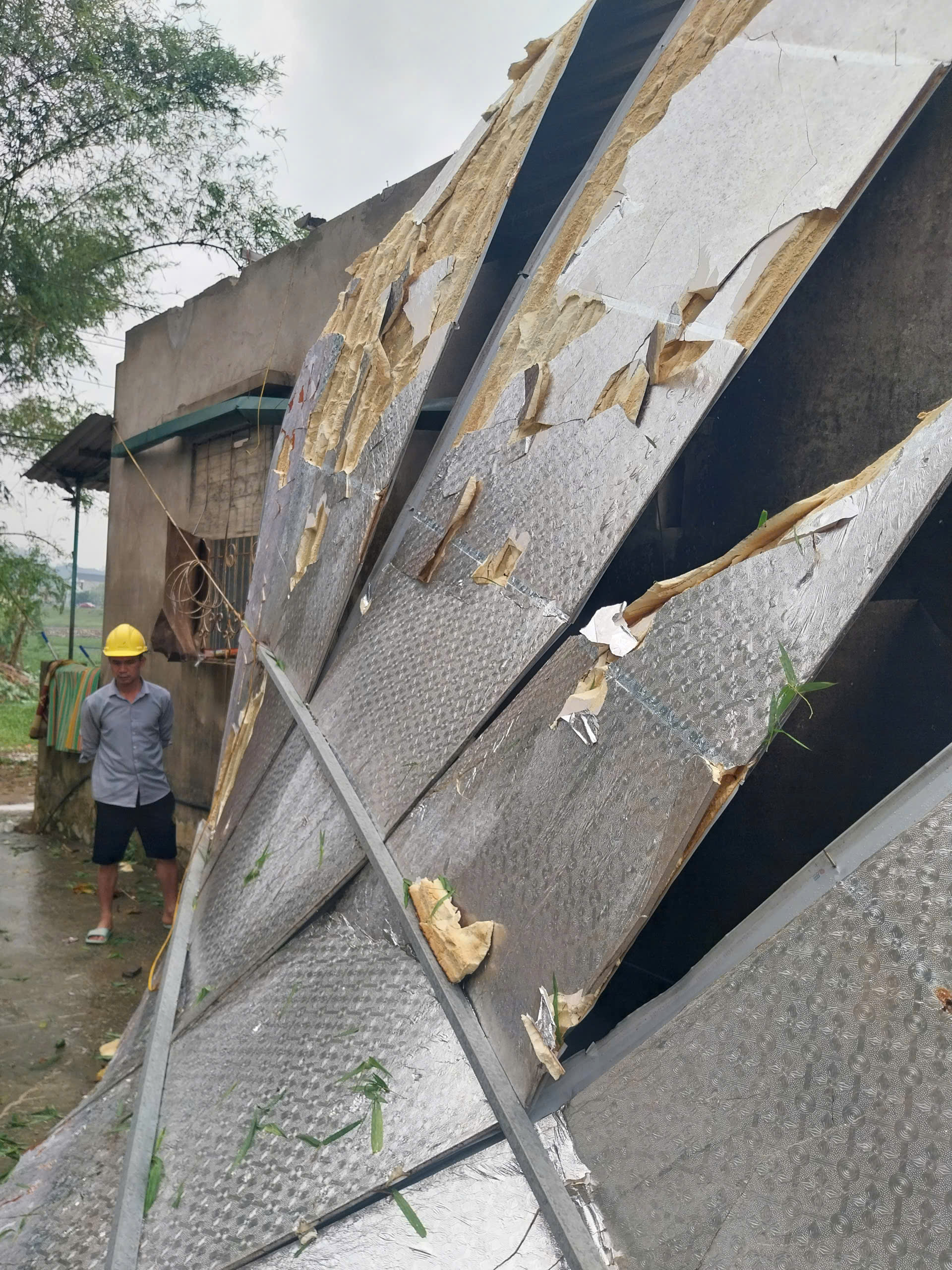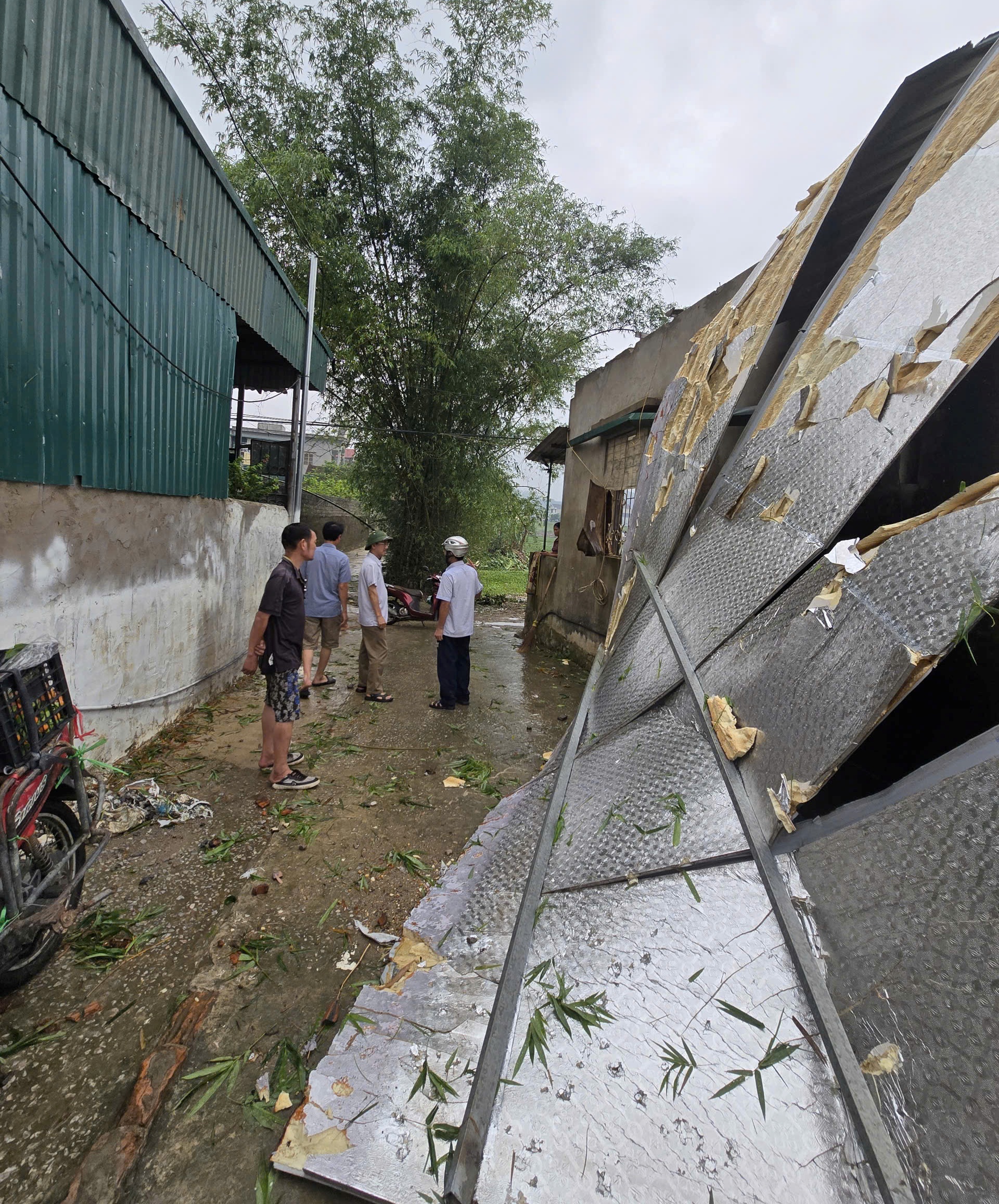Theo ghi nhận bước đầu, nhiều ngôi nhà bị vỡ nát ngói và mái tôn; 1 nhà bị tốc mái hoàn toàn; 9 nhà bị sụt mái và tốc 1 phần.