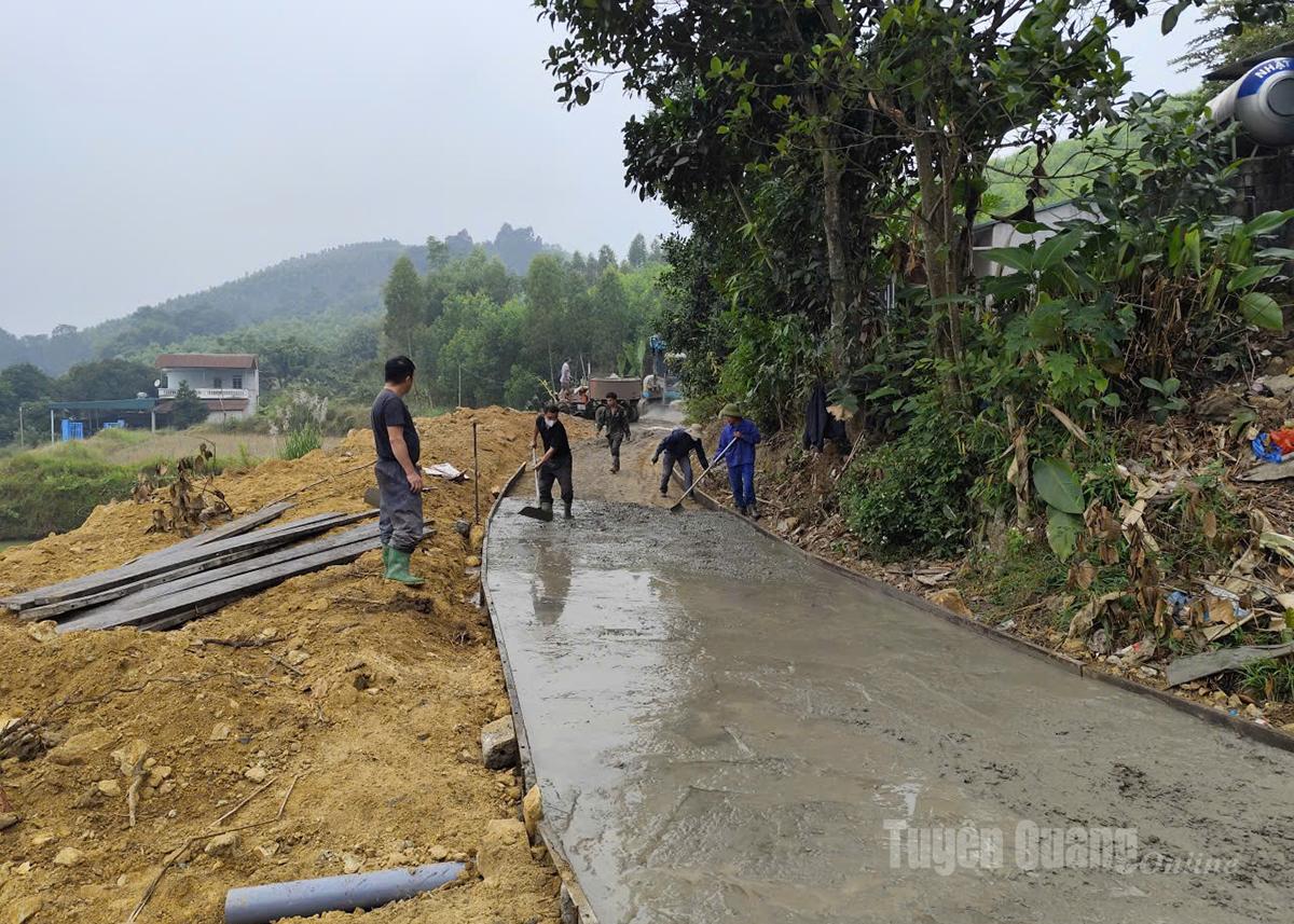 Tại thôn Trại Xoan, phong trào làm đường bê tông nội đồng lan tỏa mạnh mẽ, trở thành điểm sáng trong xây dựng hạ tầng nông thôn. Anh La Văn Trọng, Trưởng thôn cho biết: “Trước đây, đường nội đồng chủ yếu là đường đất, nhỏ hẹp, mùa mưa lầy lội, việc vận chuyển nông sản gặp nhiều khó khăn. Khi triển khai đề án bê tông hóa, chi bộ và Ban công tác Mặt trận thôn đã họp bàn, thống nhất nguyên tắc: “Đường qua nhà ai, nhà đó làm trước; cán bộ, đảng viên hiến đất trước”, từ đó tạo sự đồng thuận cao trong nhân dân”.