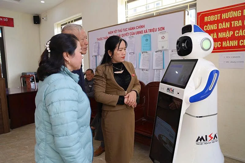 Điểm nổi bật nhất trong quá trình chuyển đổi số ở Triệu Sơn là việc ứng dụng trí tuệ nhân tạo (AI) vào phục vụ thủ tục hành chính và hỗ trợ người dân tiếp cận dịch vụ công. Trung tâm phục vụ hành chính công xã được nâng cấp hạ tầng, kết nối trực tuyến, vận hành robot tích hợp AI tư vấn, hướng dẫn người dân các quy trình, thủ tục hành chính, nộp hồ sơ trực tuyến và cung cấp thông tin, giải đáp thắc mắc của người dân về quy định pháp luật, thủ tục hành chính và hỗ trợ người dân.
