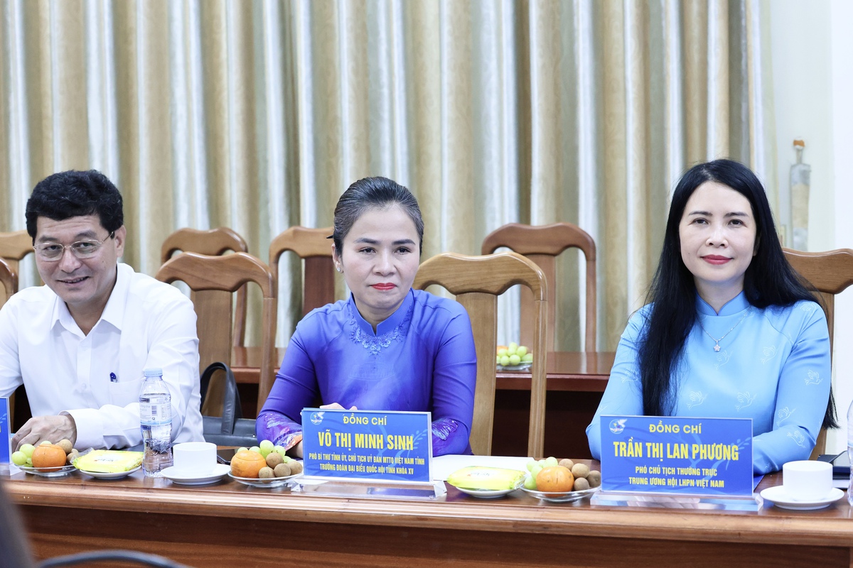 Phó Chủ tịch Thường trực Hội LHPN Việt Nam Trần Lan Phương (bên phải); Phó Bí thư Tỉnh ủy Nghệ An, Chủ tịch Ủy ban MTTQ Việt Nam tỉnh Nghệ An Võ Thị Minh Sinh (giữa) và đại diện lãnh đạo tỉnh Nghệ An tham dự buổi làm việc