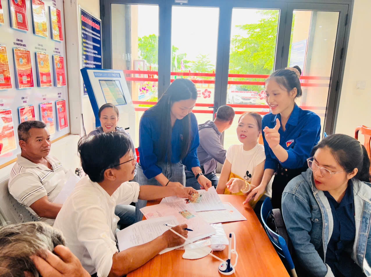 Lực lượng đoàn viên ở Trung tâm phục vụ Hành chính công xã Bà Nà hướng dẫn người dân thực hiện thủ tục hành chính. Ảnh: ĐVCC