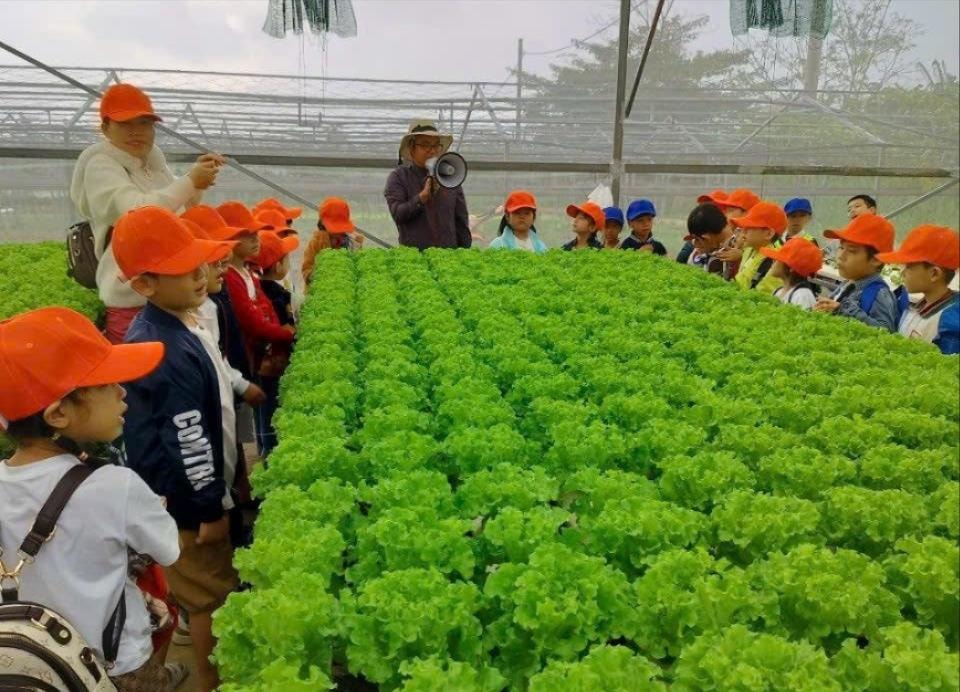 Du lịch trải nghiệm cho học sinh tại Làng rau Túy Loan, một trong những hoạt động thường xuyên được thể hiện trên hệ sinh thái số "Hòa Vang Green". Ảnh ĐVCC