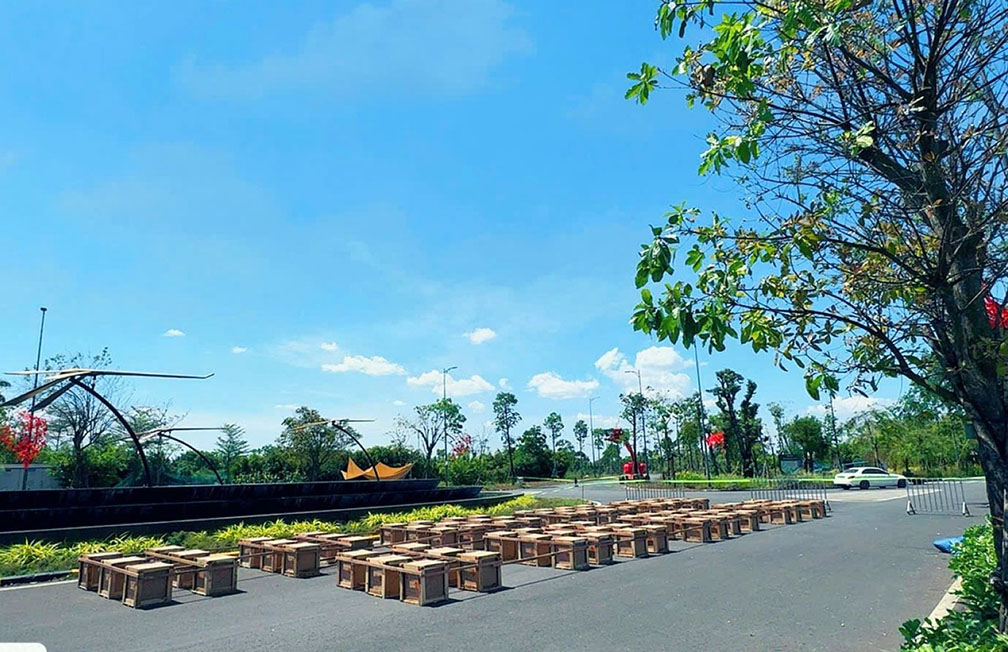 Các giàn pháo hoa được tập kết tại điểm bắn xã Long Thành.