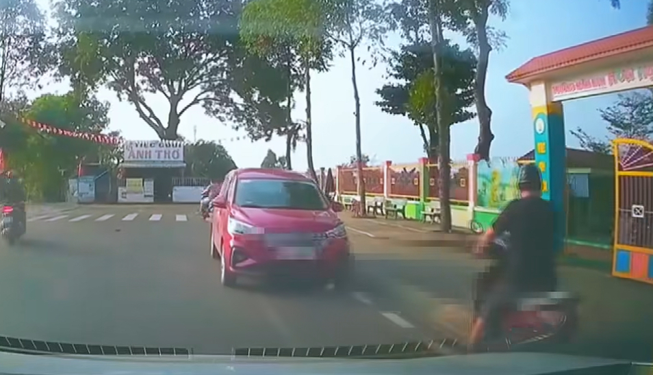 Xe ô tô dừng ngược chiều trước cổng trường.