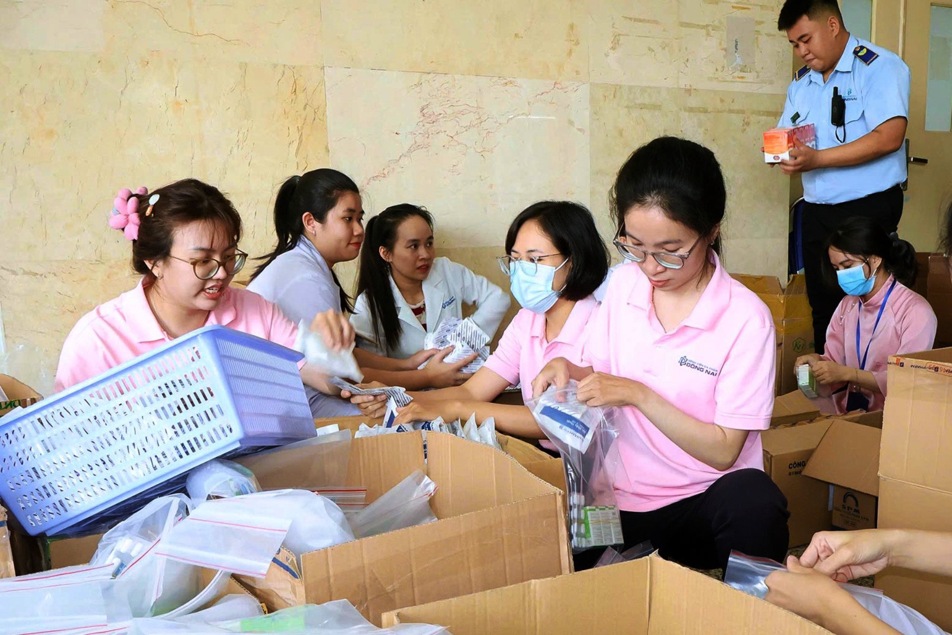 Các nhân viên bệnh viện ở Đồng Nai chuẩn bị các túi thuốc y tế. Ảnh: Đ.N