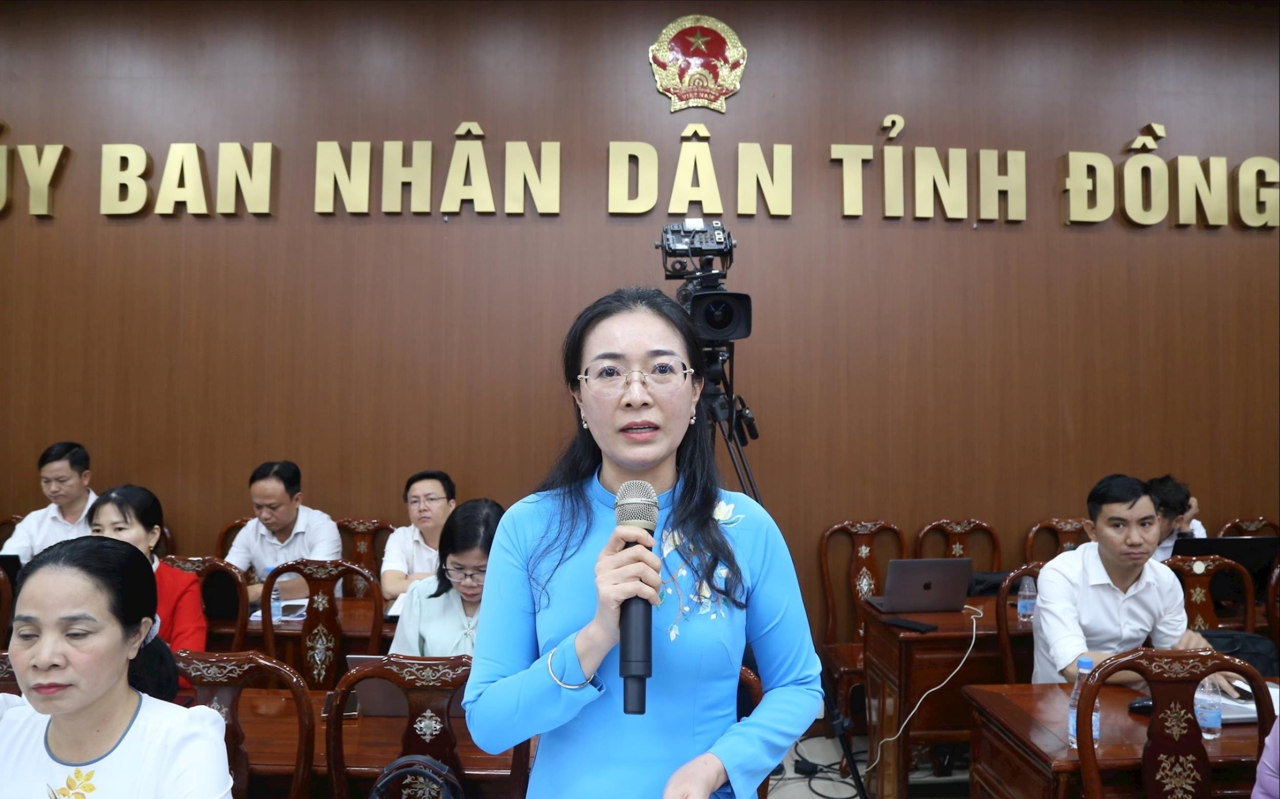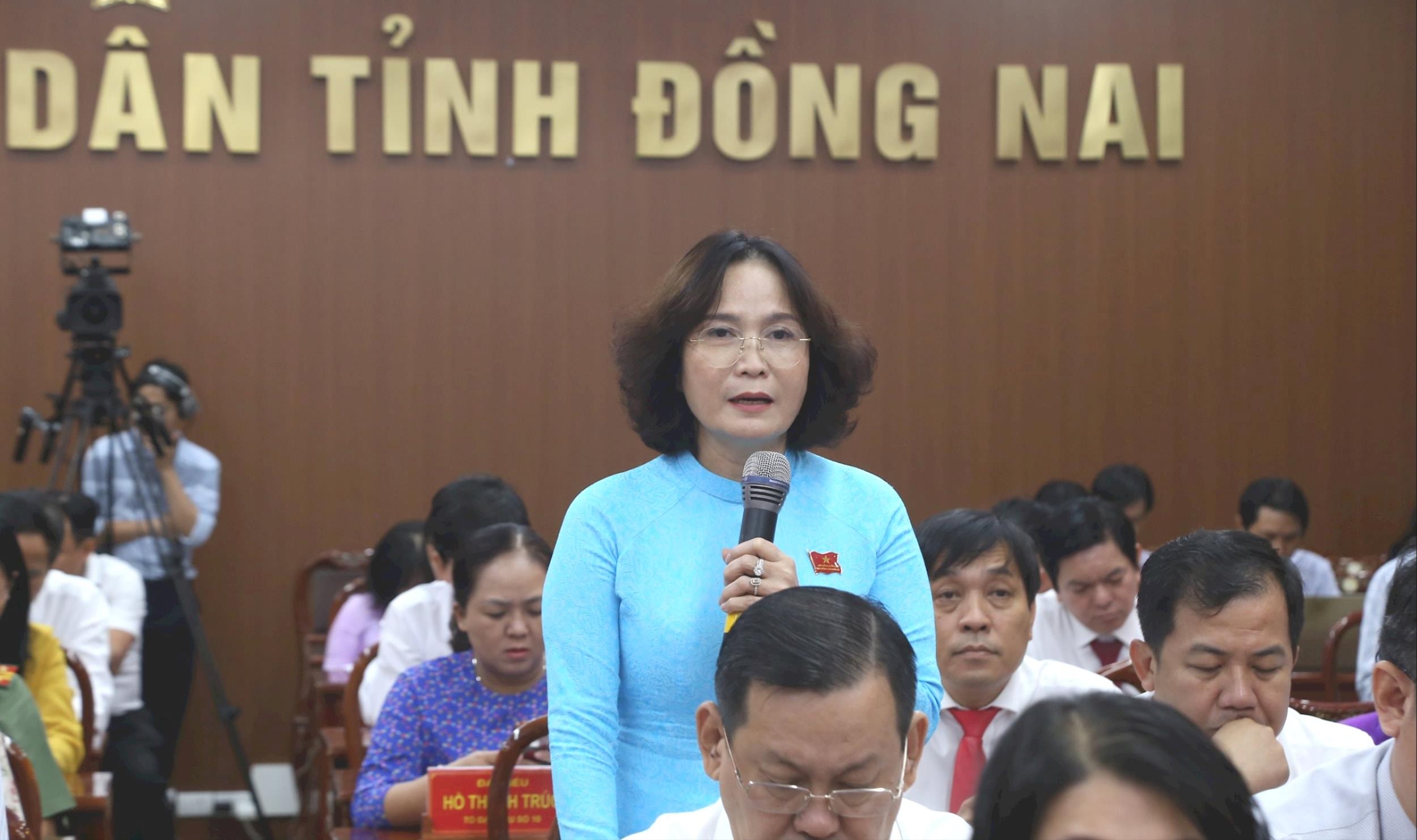 Trưởng ban Văn hóa - Xã hội HĐND tỉnh Đồng Nai Huỳnh Ngọc Kim Mai trình bày một số nội dung thẩm tra. Ảnh: Văn Dũng