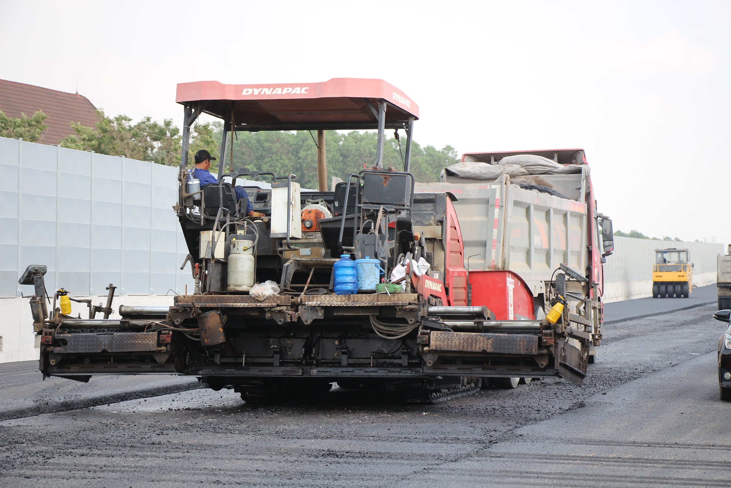Công nhân thảm nhựa đường, tăng tốc thi công.
