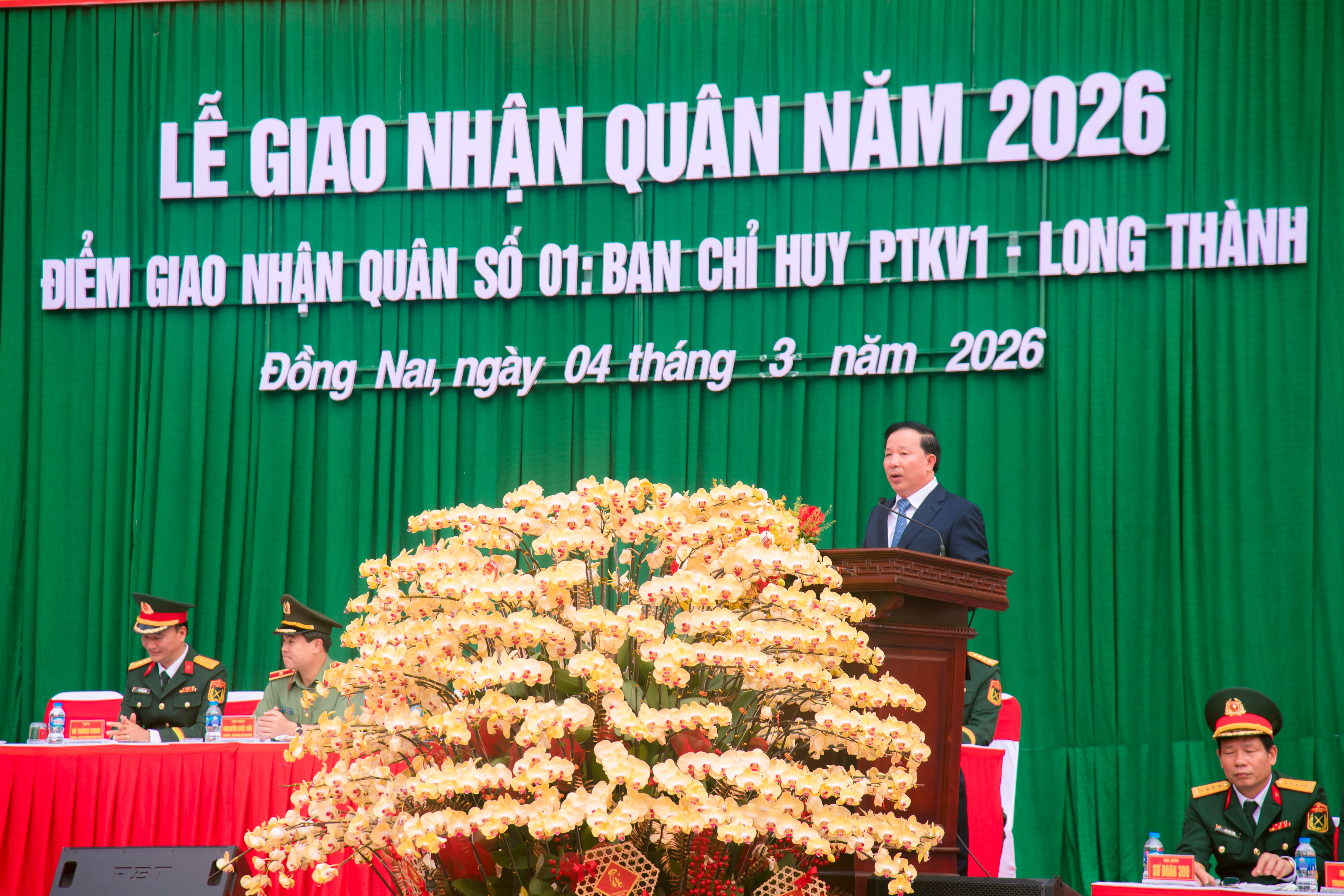 Thượng tướng Nguyễn Trường Thắng cùng lãnh đạo Tỉnh ủy, UBND tỉnh Đồng Nai và Quân khu 7, Bộ CHQS tỉnh Đồng Nai dự lễ giao nhận quân năm 2026