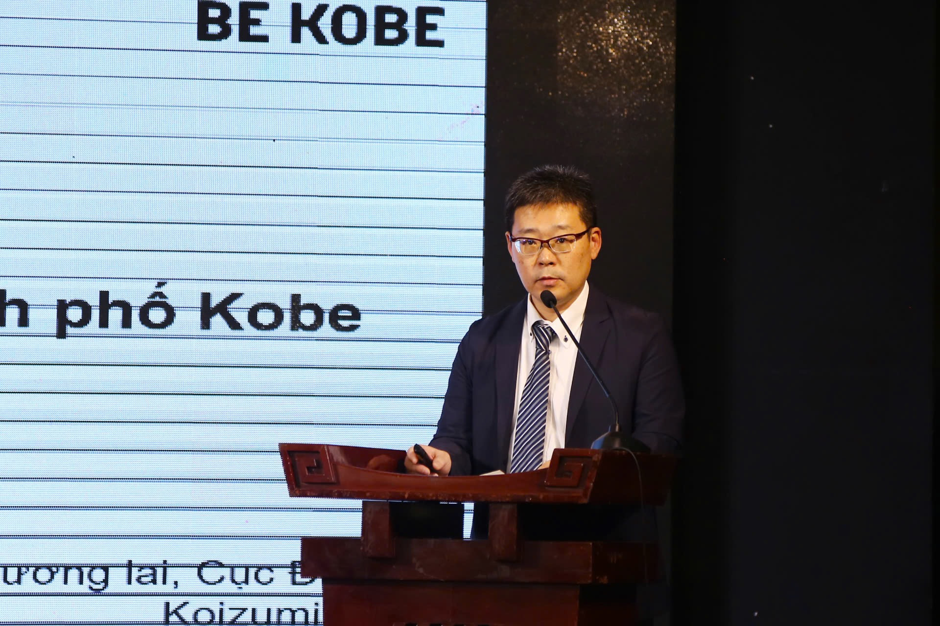 Ông Yoji Koizumi, Giám đốc Ban Xúc tiến thành phố tương lai, Cục Quy hoạch Đô thị, TP Kobe (Nhật Bản) trình bày hợp tác.