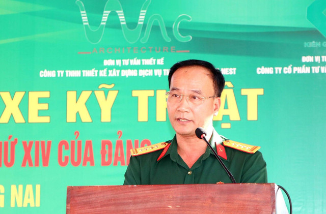 Đại tá Võ Thành Danh, Ủy viên Ban Thường vụ Tỉnh ủy, Chỉ huy trưởng Bộ Chỉ huy Quân sự tỉnh Đồng Nai phát biểu tại lễ khởi công (Ảnh: Ngọc Liên)