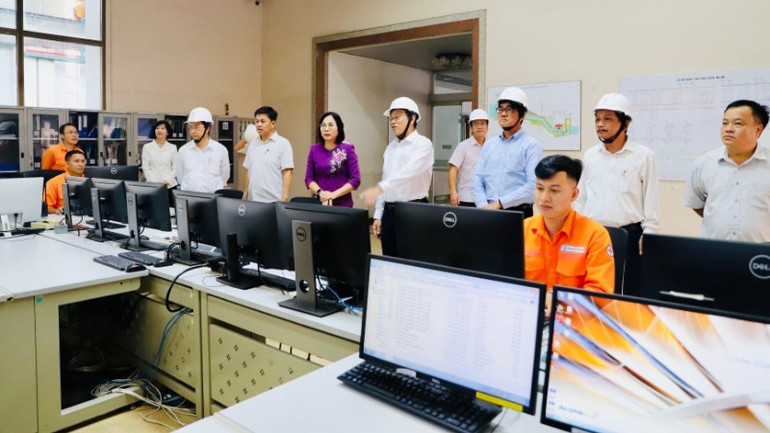 Phó Chủ tịch Ủy ban nhân dân tỉnh Đồng Nai Nguyễn Thị Hoàng cùng Đoàn kiểm tra tại Công ty Thủy điện Trị An.