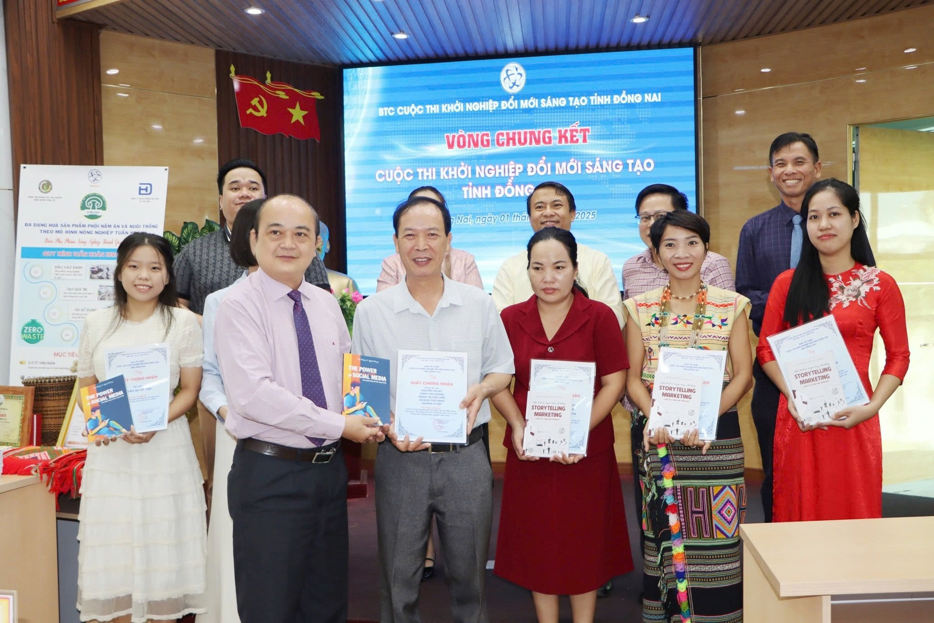 Ông Võ Hoàng Khai - Phó Giám đốc Sở Khoa học Công nghệ tỉnh Đồng Nai trao giấy chứng nhận cho các đơn vị startup khởi nghiệp