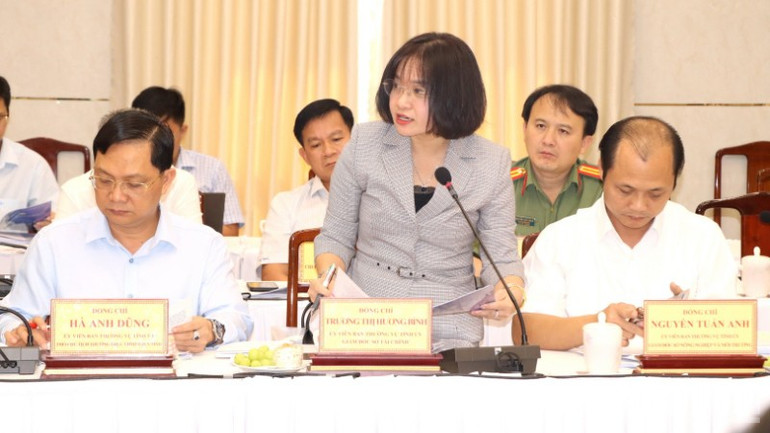 Ủy viên Thường vụ Tỉnh ủy, Giám đốc Sở Tài chính Đồng Nai Trương Thị Hương Bình báo cáo tại buổi làm việc.