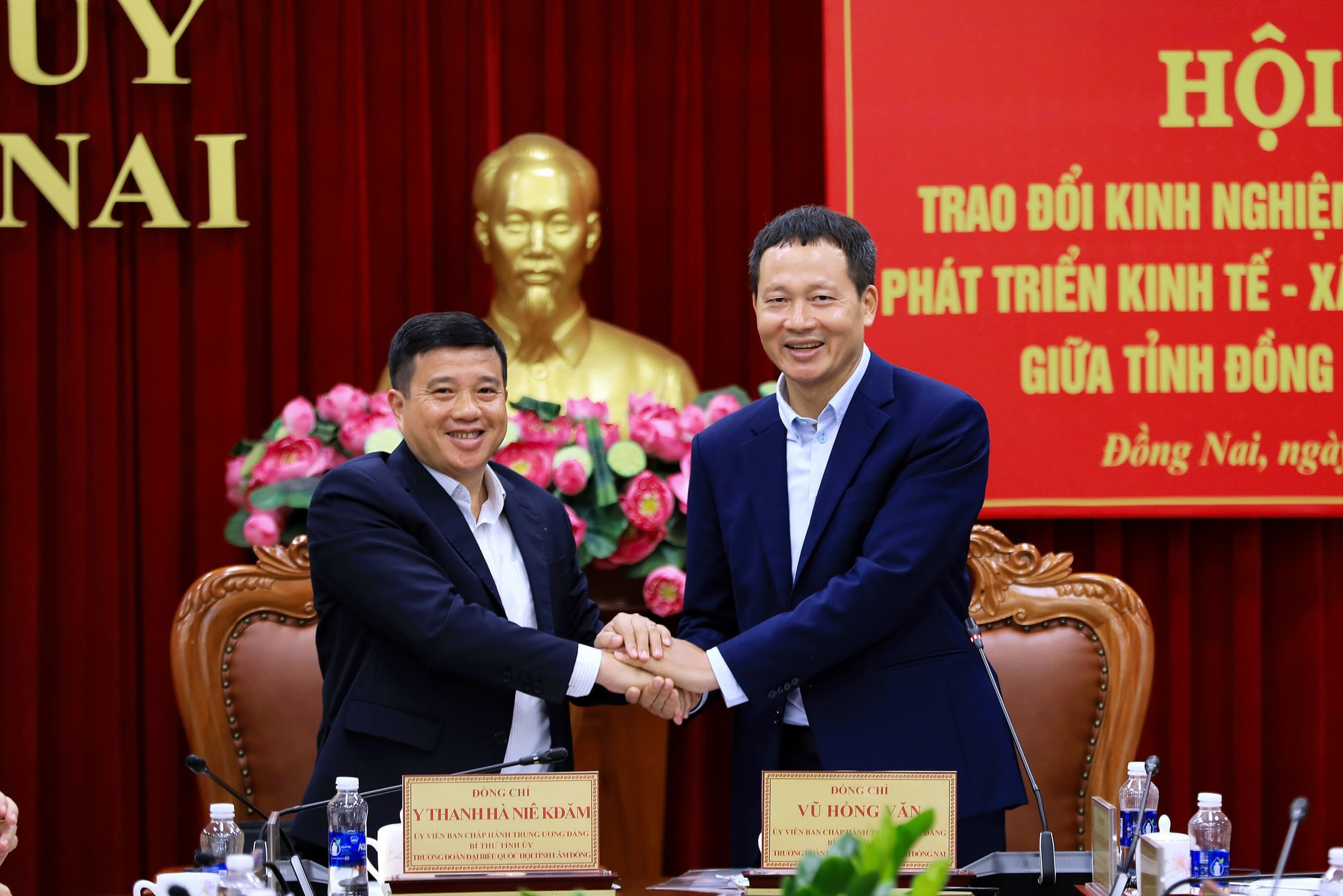 Bí thư Tỉnh ủy Đồng Nai Vũ Hồng Văn và Bí thư Tỉnh ủy Lâm Đồng Y Thanh Hà Niê Kđăm thống nhất hợp tác chiến lược, thực chất và có sản phẩm cụ thể giữa hai tỉnh