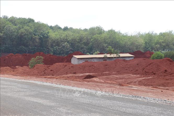 Nhà thầu đã thuê 4 vị trí ở dọc hai bên tuyến đường để tập kết bảo quản đất dư thừa, khi công trình hoàn thành sẽ bàn giao lại cho cơ quan chức năng. Ảnh: Nhật Bình/TTXVN