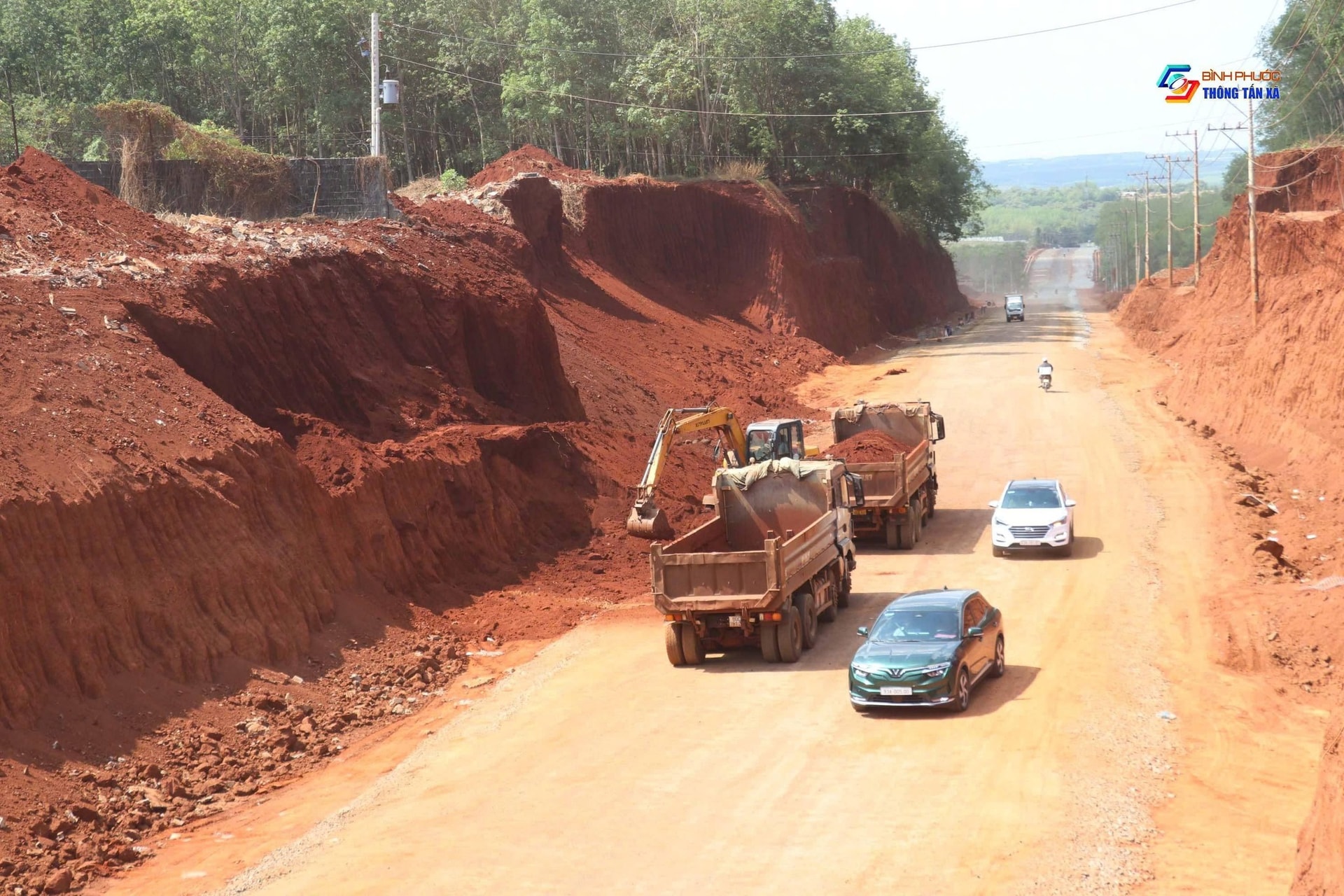 Tại hiện trường, PV Một Thế Giới ghi nhận một đoạn công trường kéo dài khoảng 300m, thuộc xã Tân Lợi. Đơn vị thi công đã hạ cốt nền, sâu xuống lòng đất trung bình khoảng 5m, còn điểm sâu nhất khoảng 8 - 9m, so với mặt đất hiện hữu. Đoạn đường nơi đây đã được thi công hoàn thiện phần móng, cấp phối đá dăm rộng từ 12 - 14m.
