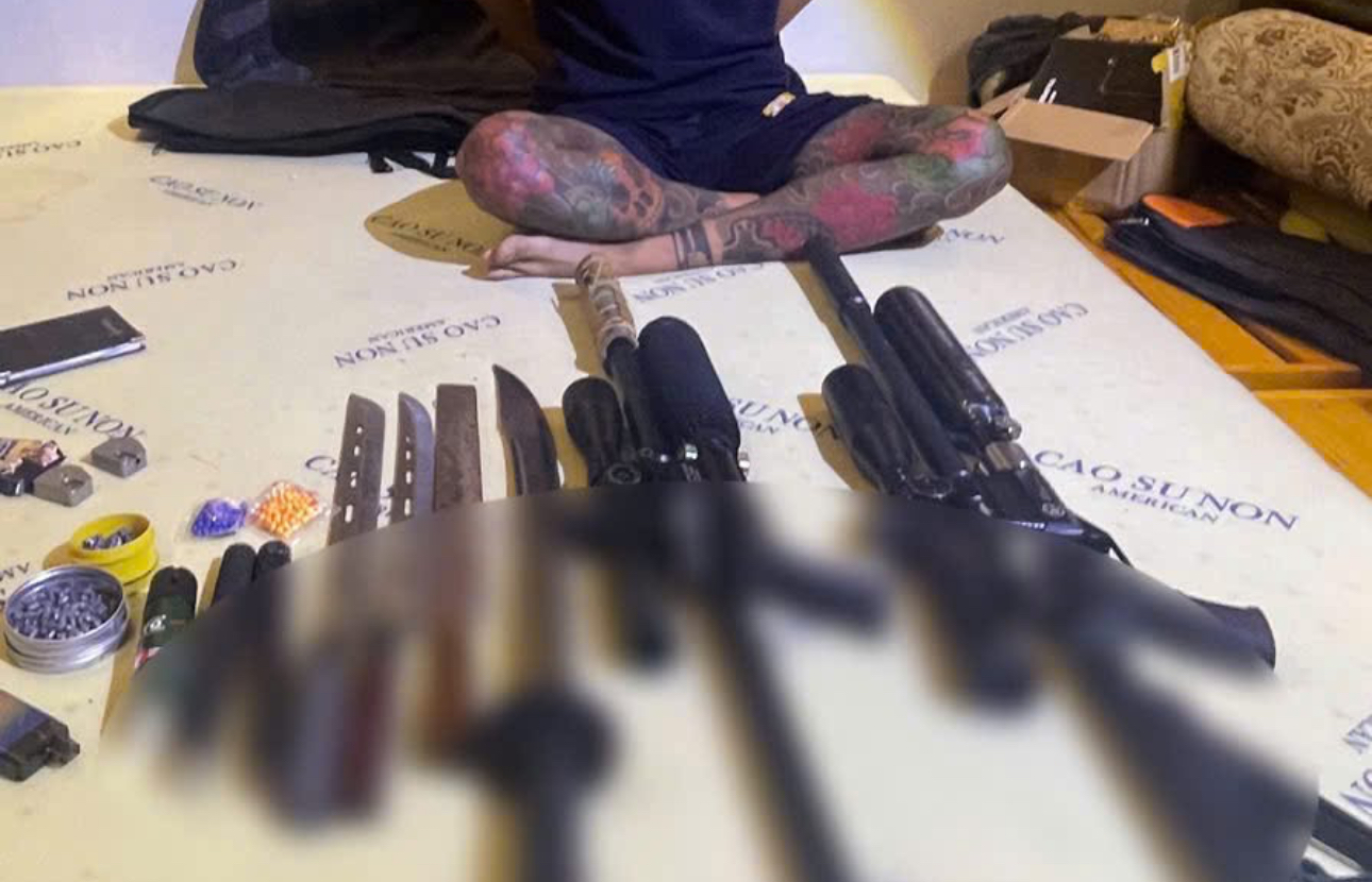 Tại cơ quan công an, Lộc khai nhận đã mua số vũ khí trên từ năm 2023. Thông qua tài khoản Facebook, đối tượng đặt mua 2 khẩu súng hơi và 200 viên đạn chì với giá khoảng 28 triệu đồng, đồng thời mua 4 con dao tự chế trên mạng để cất giữ.
