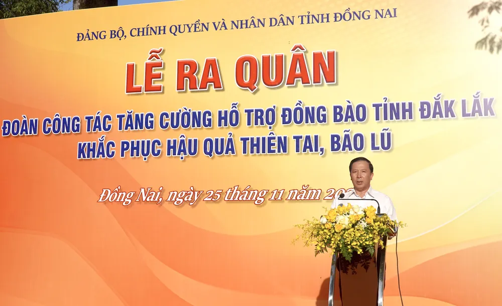 Sáng ngày 25-11, Đảng bộ, chính quyền và nhân dân tỉnh Đồng Nai tổ chức lễ xuất quân tăng cường hỗ trợ đồng bào tỉnh Đắk Lắk khắc phục hậu quả thiên tai bão lũ.
