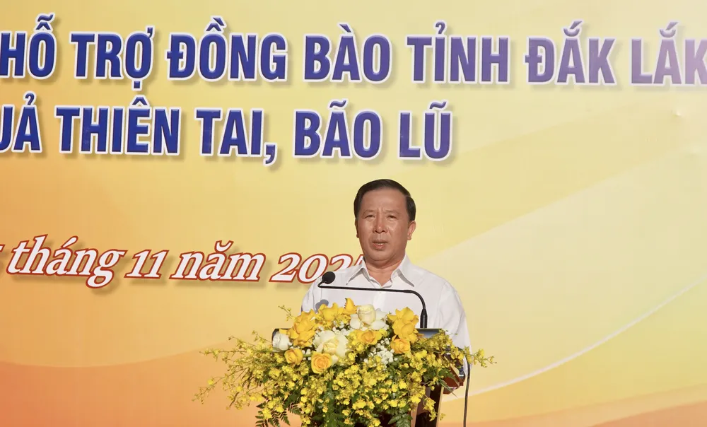 Chủ tịch UBND tỉnh Đồng Nai nhấn mạnh: Mỗi thành viên trong đoàn đến tỉnh Đắk Lắk không chỉ là đại diện cho ngành, đơn vị mình mà còn là sứ giả của tình đoàn kết, nghĩa đồng bào của Đảng bộ, chính quyền và nhân dân tỉnh Đồng Nai gửi tới tỉnh Đắk Lắk.