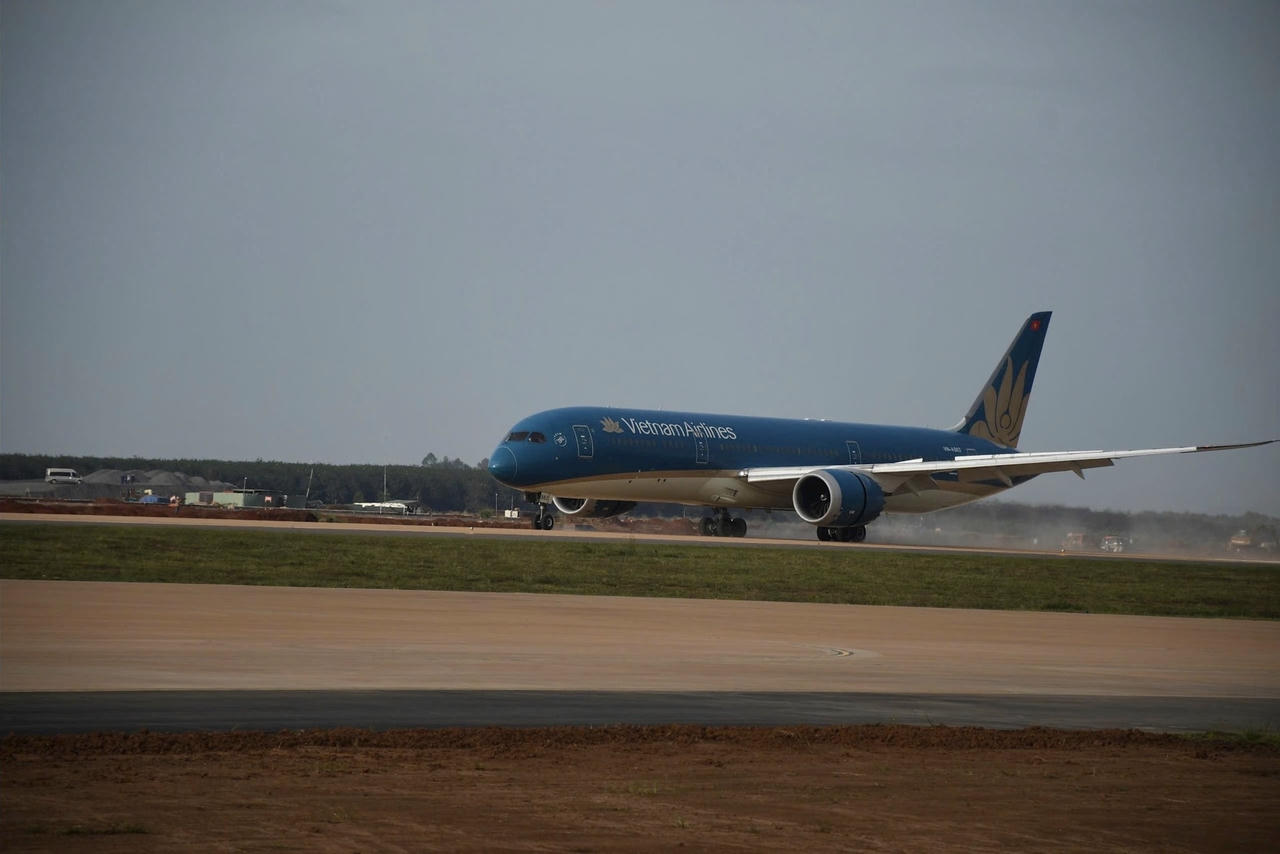 Máy bay từ từ hạ cánh xuống đường băng Sân bay Long Thành trong chuyến bay kỹ thuật vào ngày 15/12.